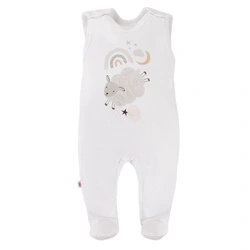 Śpiochy dziecięce białe z kolekcji "Mellow" uszyty z miękkiej i przyjemnej w dotyku dzianiny bawełnianej. Z przodu śpioszka znajduje się duży obrazek z owieczką. Krój umożliwia całkowite rozpięcie, przez co ubranko jest funkcjonalne i wygodne. Śpioch niemowlęcy wykończony jest miękką lamówką. Śpiochy mimo swojej nazwy mamy, nie tylko zakładają do spania swoim maluszkom. Z kaftanem z tej samej kolekcji tworzą śliczny komplet wyjściowy.