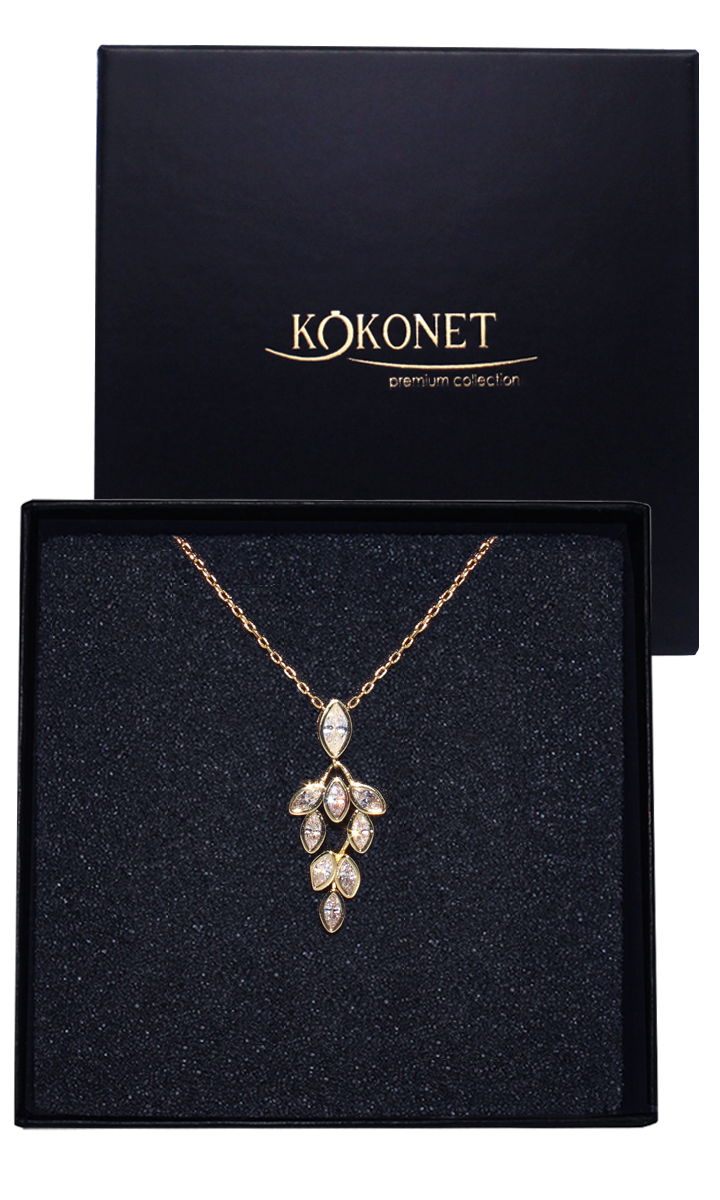 Efektowny naszyjnik złoty w pudełku ślubny gałązki listki wysoka jakość