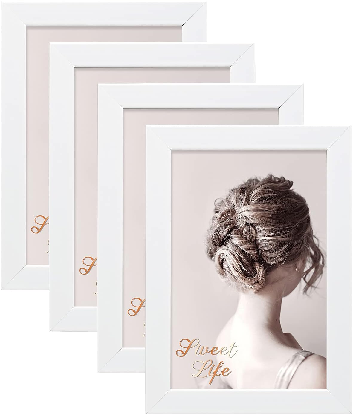 Egofine Ramka na zdjęcia 10 x 15, zestaw 4 szt., wytrzymałe ramki na zdjęcia z prawdziwego szkła – poziome lub pionowe do zawieszenia na ścianie lub dekoracji stołu, biała