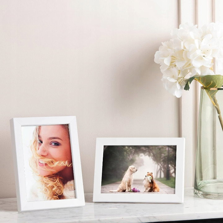 Wszechstronny wyświetlacz: wiszące okucia z tyłu ułatwiają umieszczenie zdjęć na ścianie. Ramki na zdjęcia 10 x 15 w kolorze białym mogą być również wyświetlane pionowo lub poziomo w klamrach na stole. Są wspaniałym dodatkiem do łazienki, sypialni, salonu, kuchni lub każdego pomieszczenia!
