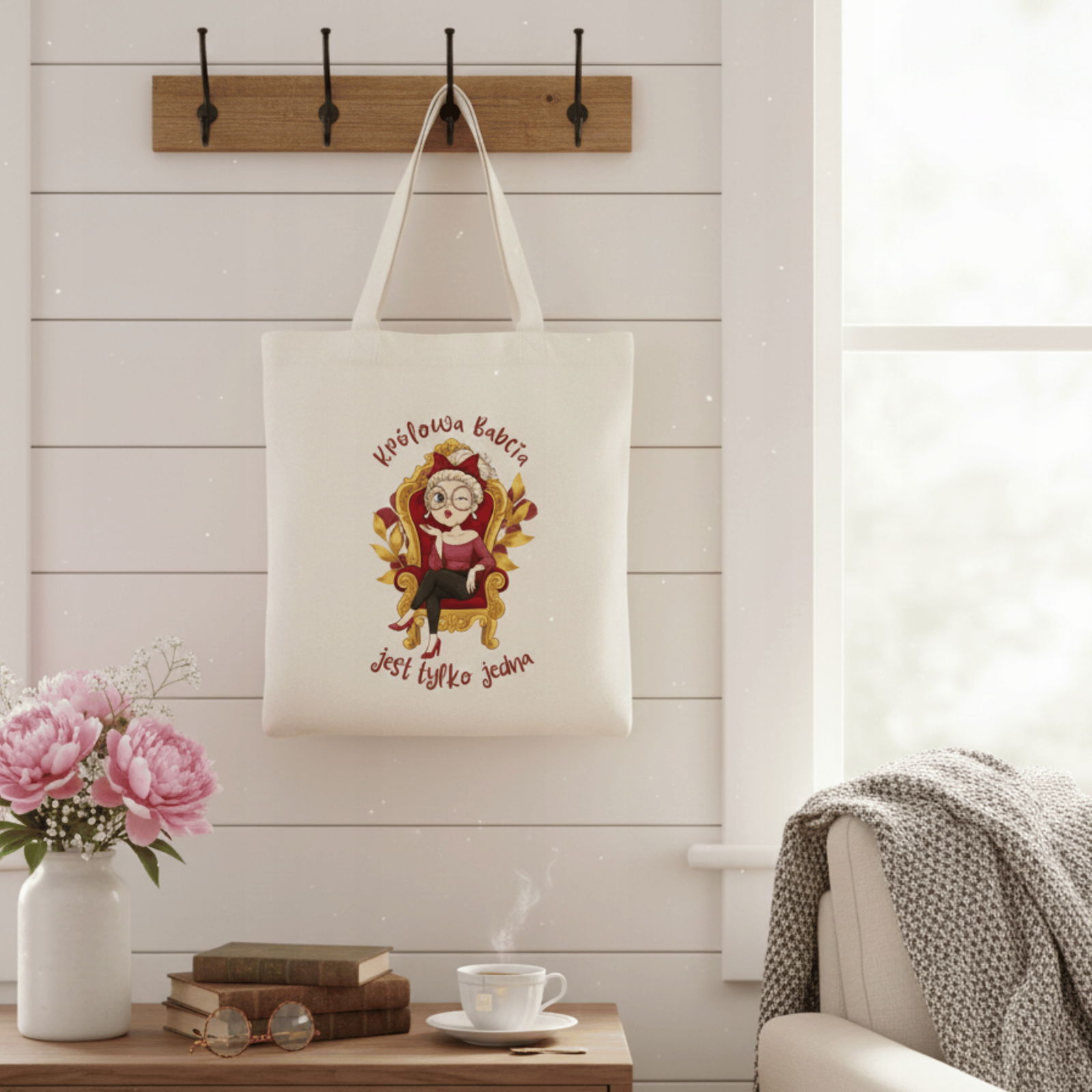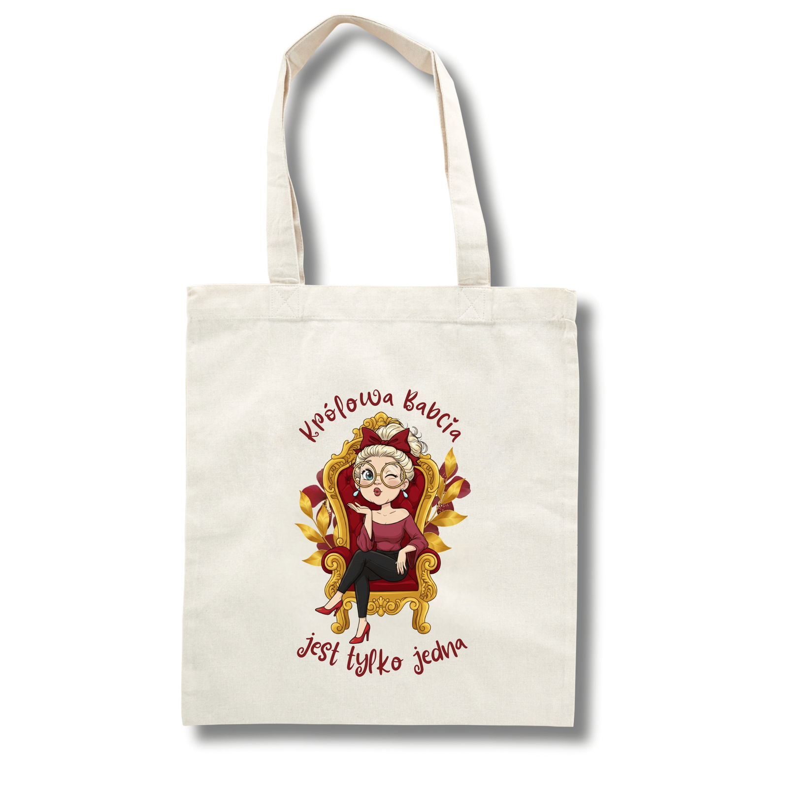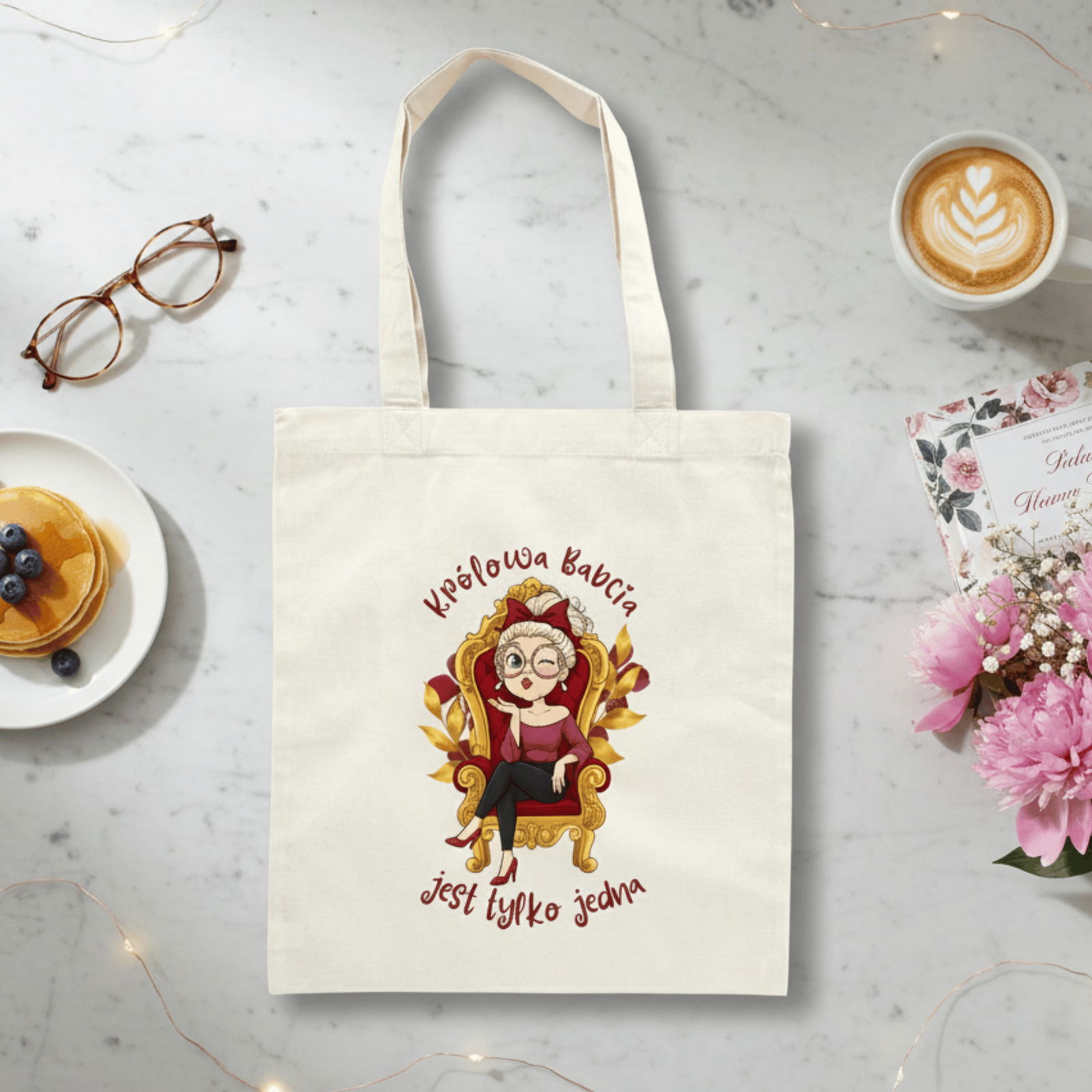 Torba Bawełniana EKO na Dzień Babci – "Królowa Babcia..." – Prezent Shopper