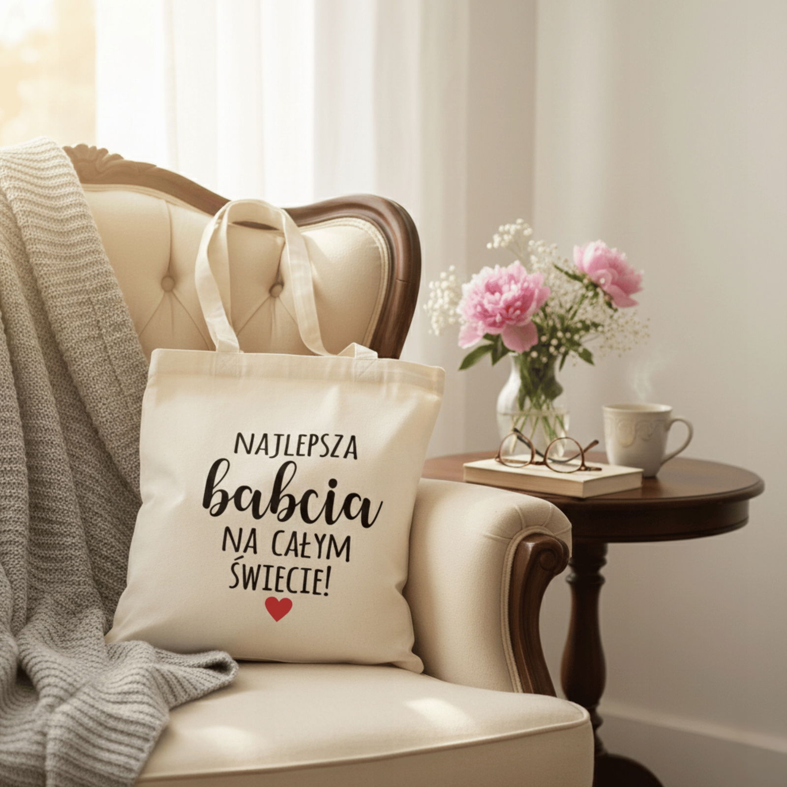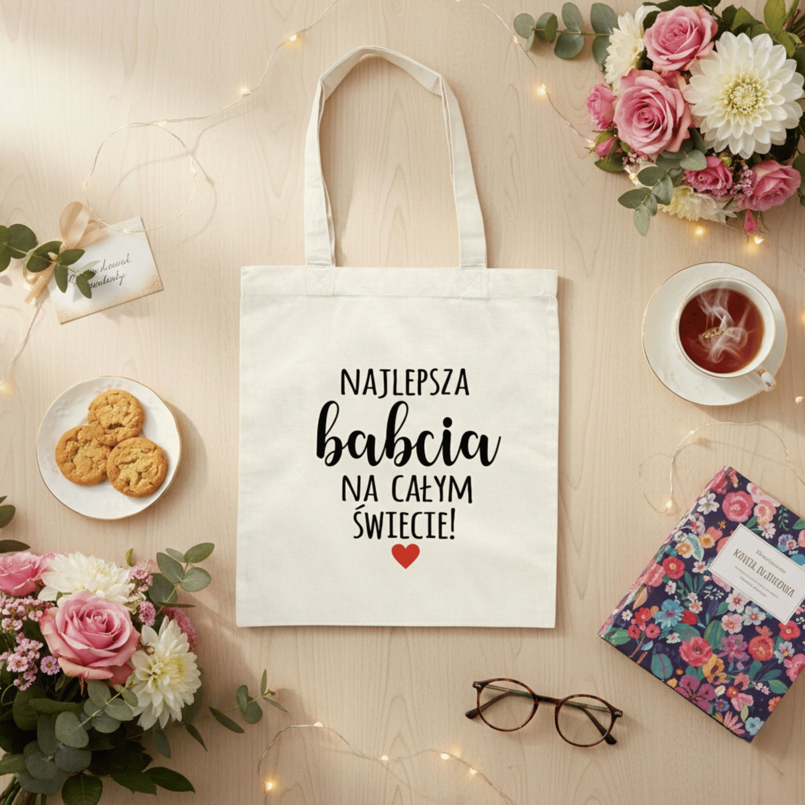 Szukasz prezentu, który wywoła uśmiech na twarzy Twojej Babci i będzie jej towarzyszył każdego dnia? Oto piękna, ekologiczna torba typu shopper z uroczą, autorską grafiką i dedykacją "Najlepsza Babcia na świecie". To idealne połączenie praktyczności z sentymentalnym przesłaniem!