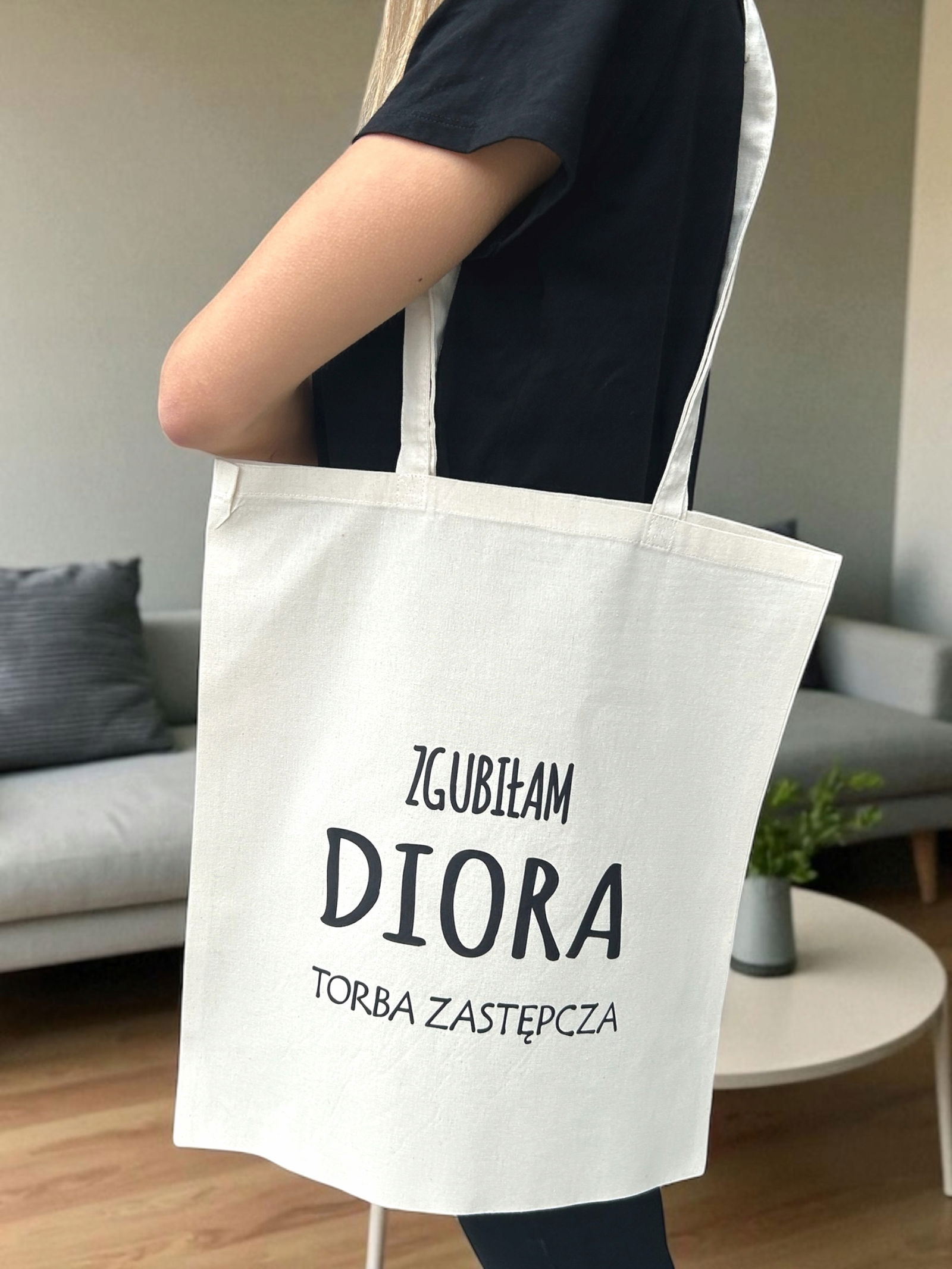 TORBA BAWEŁNIANA Z NADRUKIEM „ZGUBIŁAM DIORA – TORBA ZASTĘPCZA”