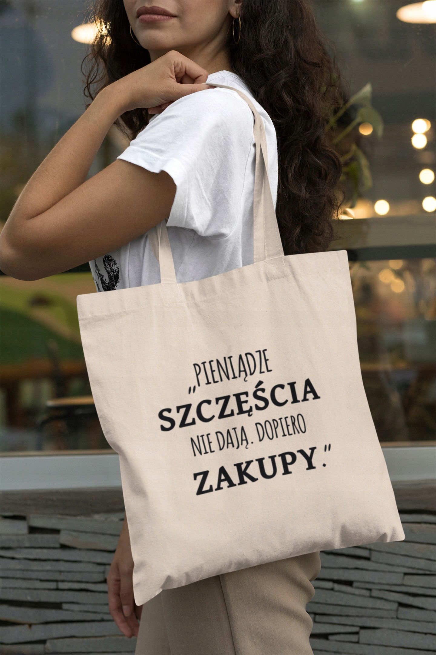 TORBA BAWEŁNIANA Z NADRUKIEM „Pieniądze szczęścia nie dają. Dopiero ZAKUPY”