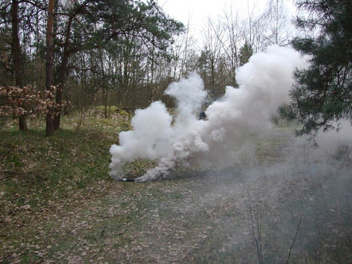 - po zapaleniu się zapłonnika rzucić granat w żądanym kierunku (czas dymienia ok. 60s)
