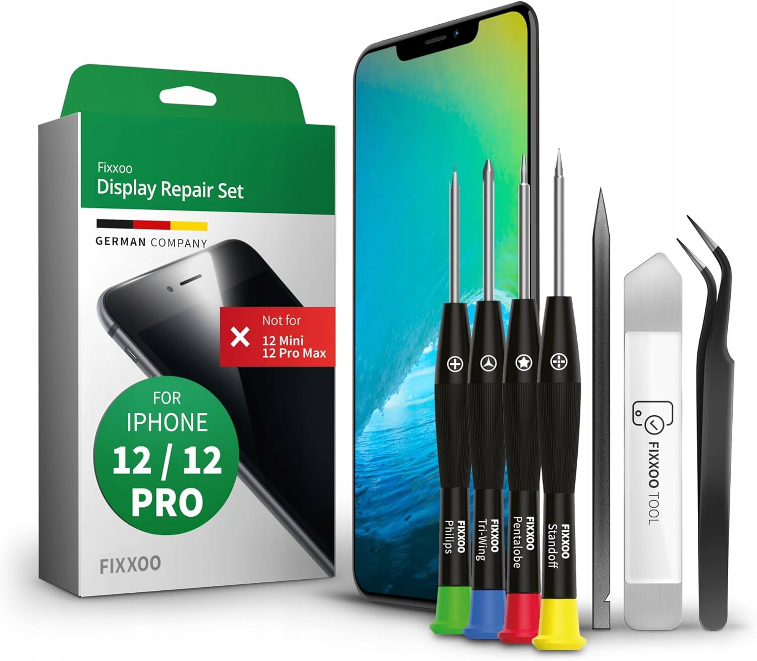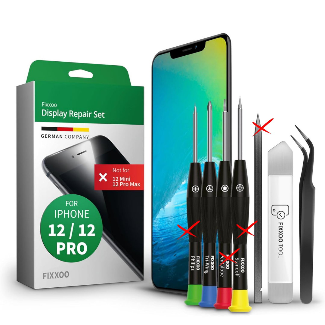 GIGA Fixxoo oryginalny wyświetlacz do iPhone 12, iPhone 12 Pro [zestaw narzędzi] – szkło LCD Retina z ekranem dotykowym – zestaw naprawczy do iPhone’a – ekran zamienny z kompletem narzędzi.