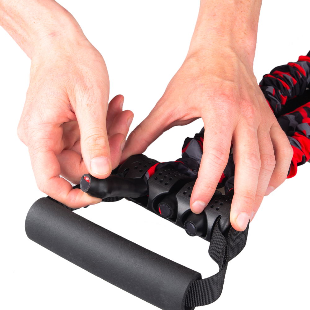 Gumy wykonano z wysokiej jakości, wyjątkowo elastycznego i trwałego lateksu. Każdą z nich można w łatwy sposób wyjąć z uchwytu, regulując tym samym poziom oporu. Dla zwiększenia komfortu i bezpieczeństwa, gumy zostały umieszczone w ochronnych nylonowych rękawach, które zabezpieczają je przed uszkodzeniem i znacząco wydłużają ich żywotność.