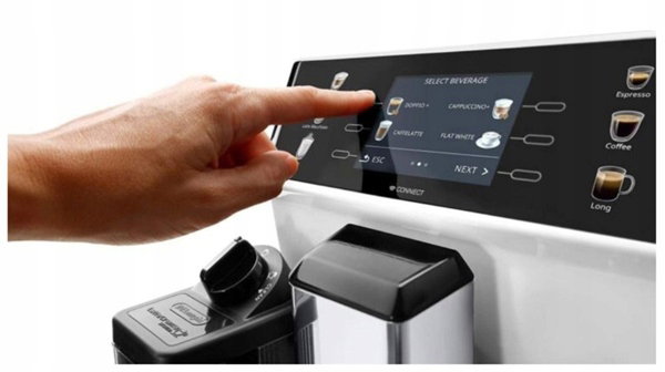 - Wygodnie wybieraj napoje na intuicyjnym, pełnokolorowym ekranie dotykowym i połącz się z aplikacją Coffee Link, aby bez ograniczeń personalizować swoje ulubione napoje.