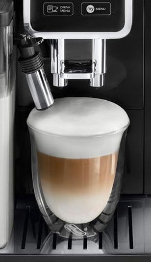 - De’Longhi z inżynieryjną precyzją łączy zaawansowane rozwiązania techniczne z miłością do kawy. Owocem tego połączenia jest innowacyjny system spieniania mleka LatteCrema z technologią dwóch oddzielnych układów hydraulicznych i precyzyjną kontrolą elektroniczną. To dzięki niemu możesz odkryć poezję subtelnego smaku aksamitnego caffelatte, wyjątkowego latte macchiato i najdoskonalszego cappuccino z puszystą pianką. Twoje perfekcyjne cappuccino będzie:
