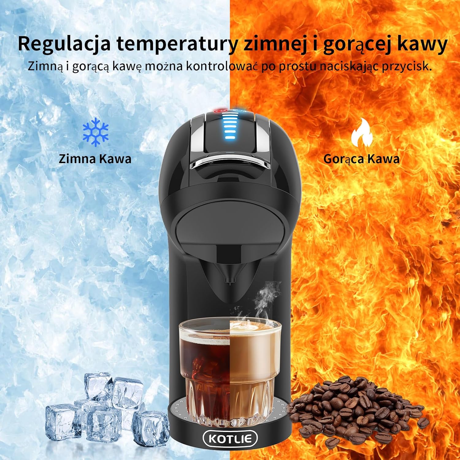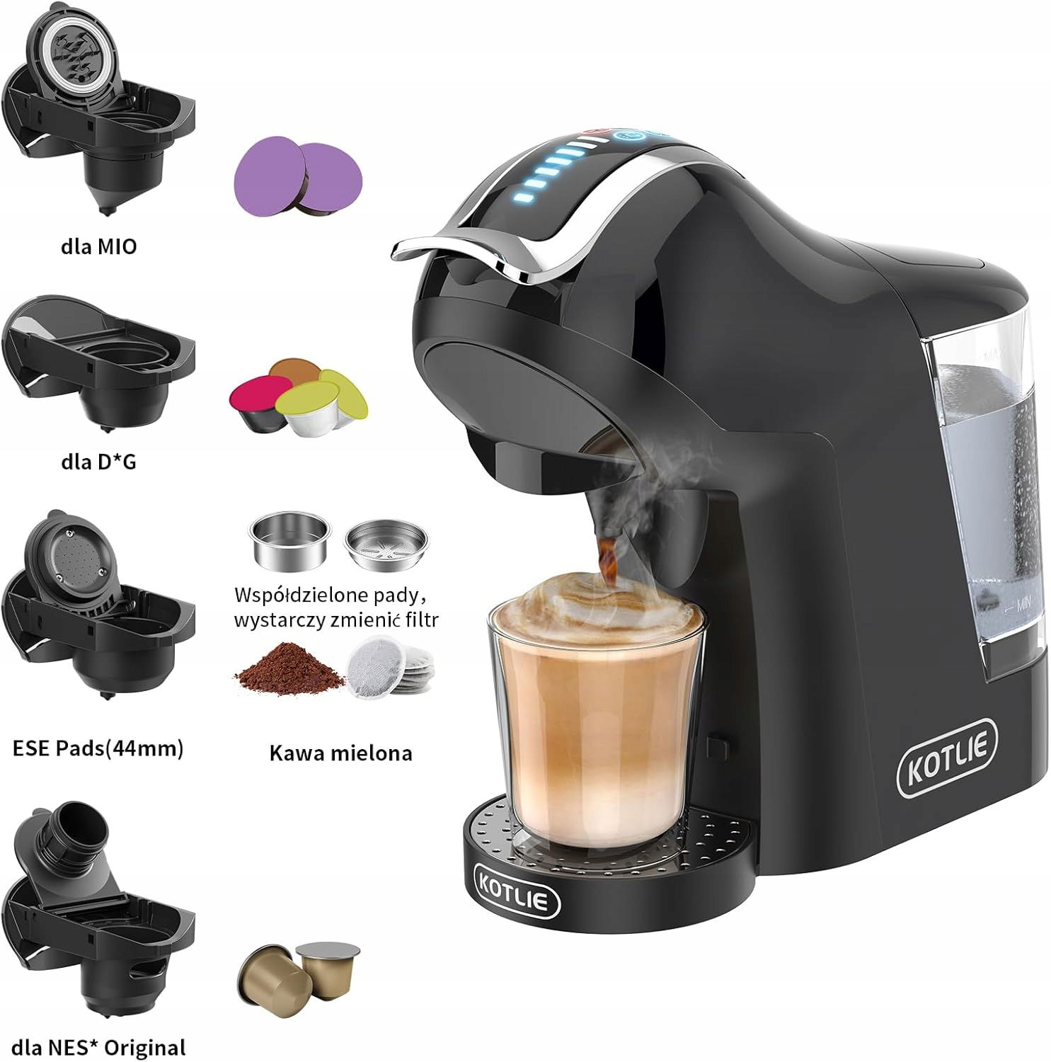 KOTLIE EM-308A ekspres do kawy 5 w 1 z ekstrakcją na zimno i na gorąco do Nes Original/dla D G/kawy mielonej/ESE (44 mm),gorąca lub zimna kawa