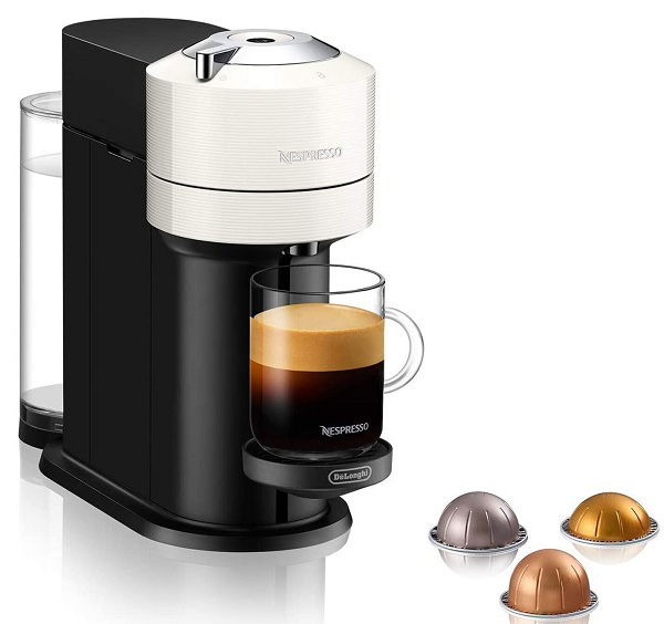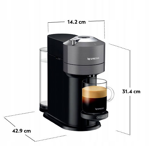 - Innowacyjna technologia kodów kreskowych: maszyna Nespresso Vertuo idealnie dopasowuje parametry takie jak ilość wody, temperatura, czas zaparzania i prędkość rotacji do danej mieszanki kawy