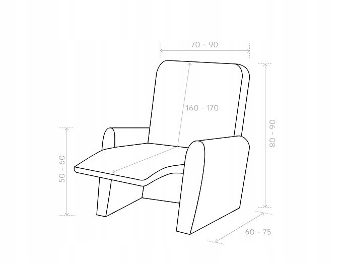 Pokrowiec jest zaprojektowany w rozmiarze 70 do 100 cm i doskonale pasuje do fotelów rozkładanych. Elastyczna tkanina idealnie przylega do mebla, zapewniając elegancki wygląd i komfort użytkowania.