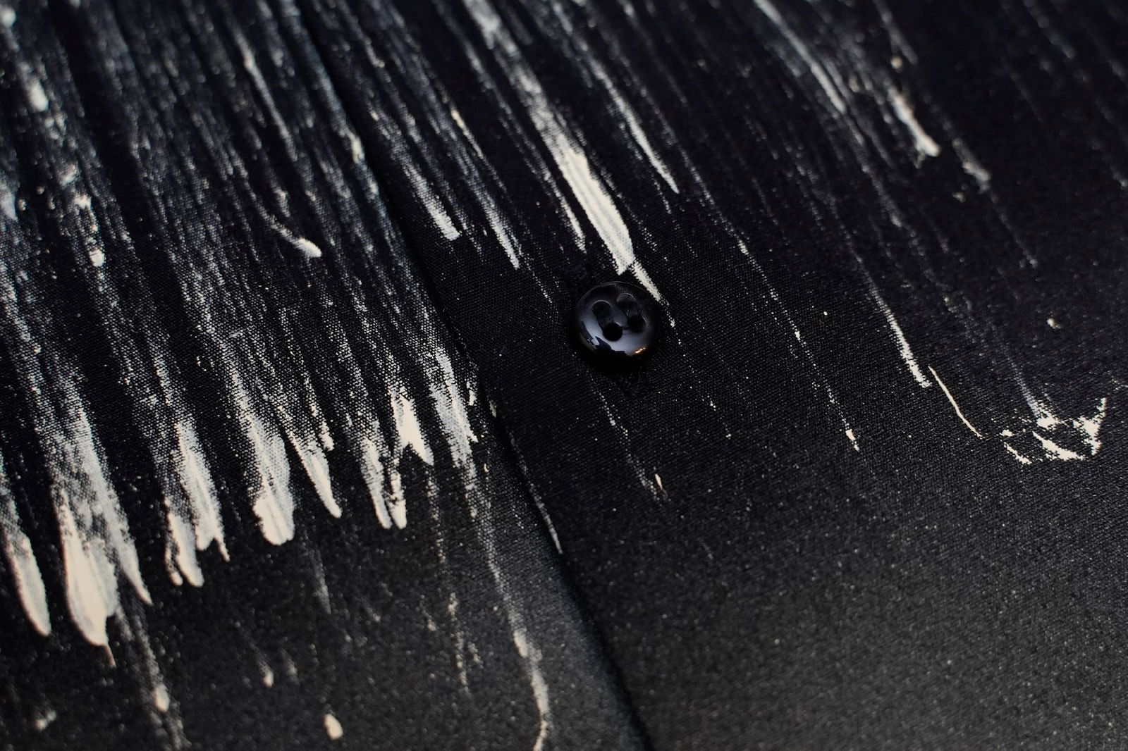 Koszula bardzo dobrej jakości. Używana w świetnym stanie, bez wad. Wygląda niczym nowa. Piękna czerń + biały motyw plam farby przyciągająca uwagę od razu. Do tego przyjemna w dotyku struktura "piasku" na całości koszuli. Takie wrażenie dotykowe. Całość tak ciekawie się prezentuje, przyciąga oko od razu! Nie mogliśmy przejść obok tej propozycji. Musiała znaleźć się w naszej ofercie.