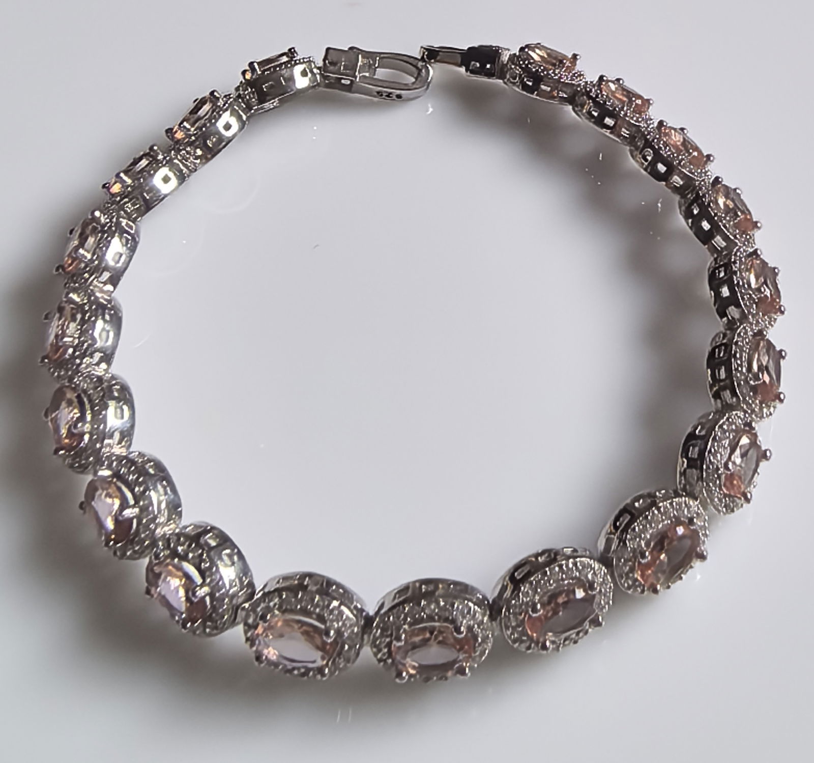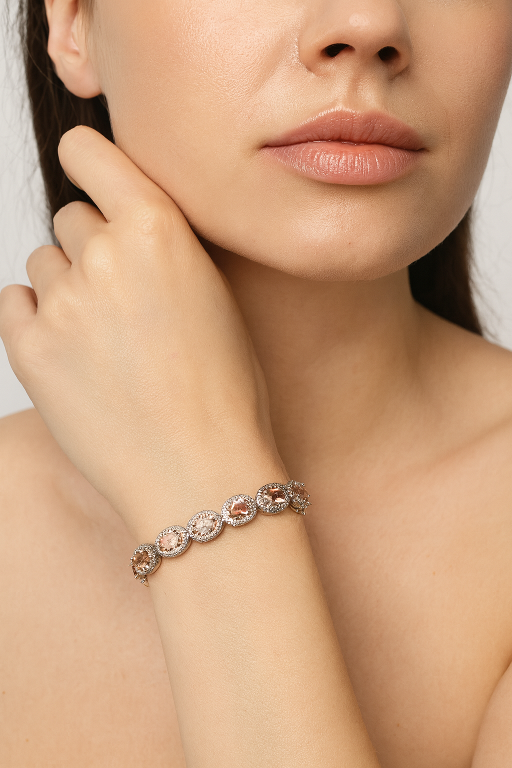 w zależności od kąta padania światła, zultanit mieni się odcieniami różu, brzoskwini, oliwki i szampana — tworząc efekt subtelnej gry kolorów na nadgarstku