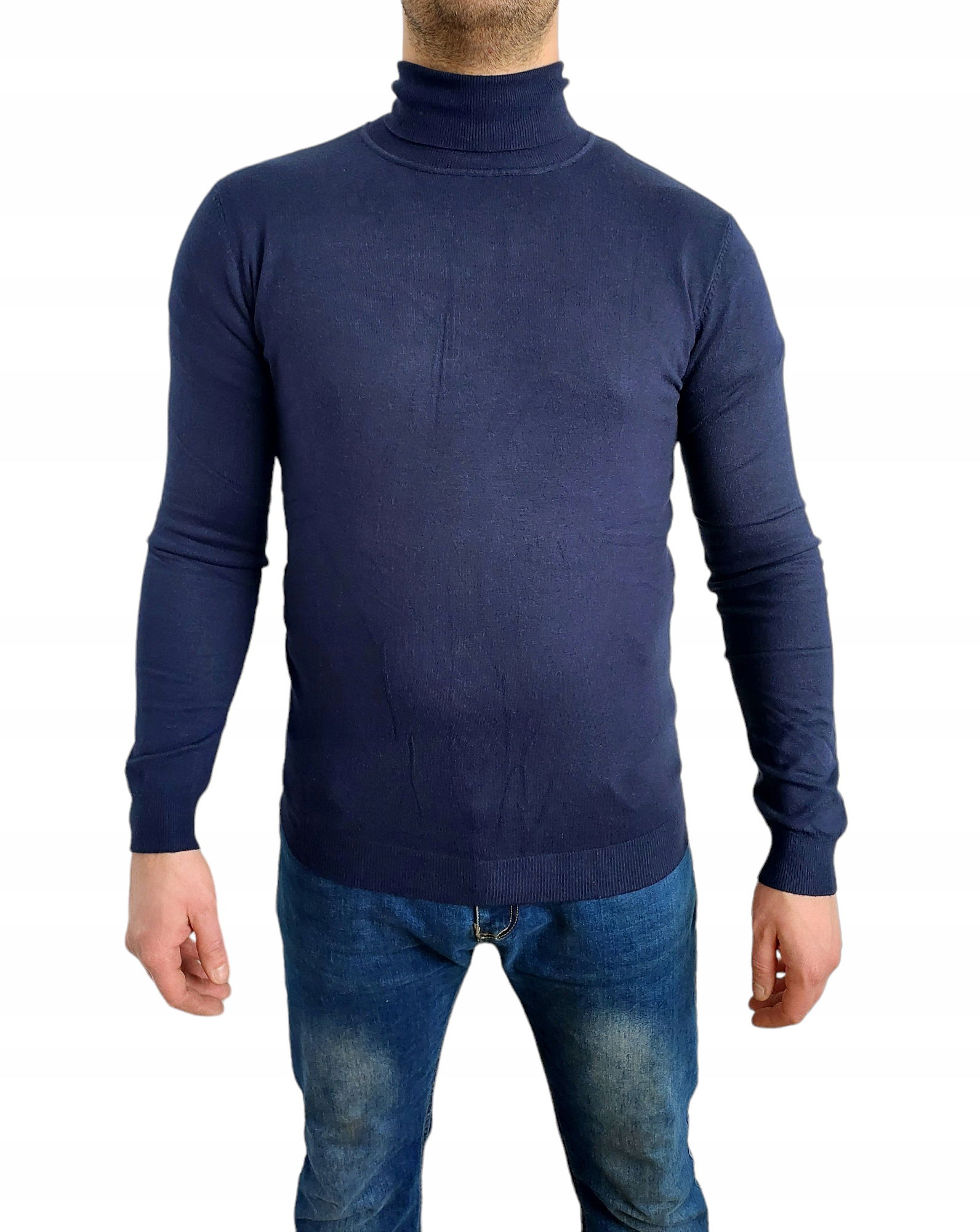 Elegancki Klasyczny Golf Sweter Męski Granat MElegancki Klasyczny Golf Sweter Męski Granat M