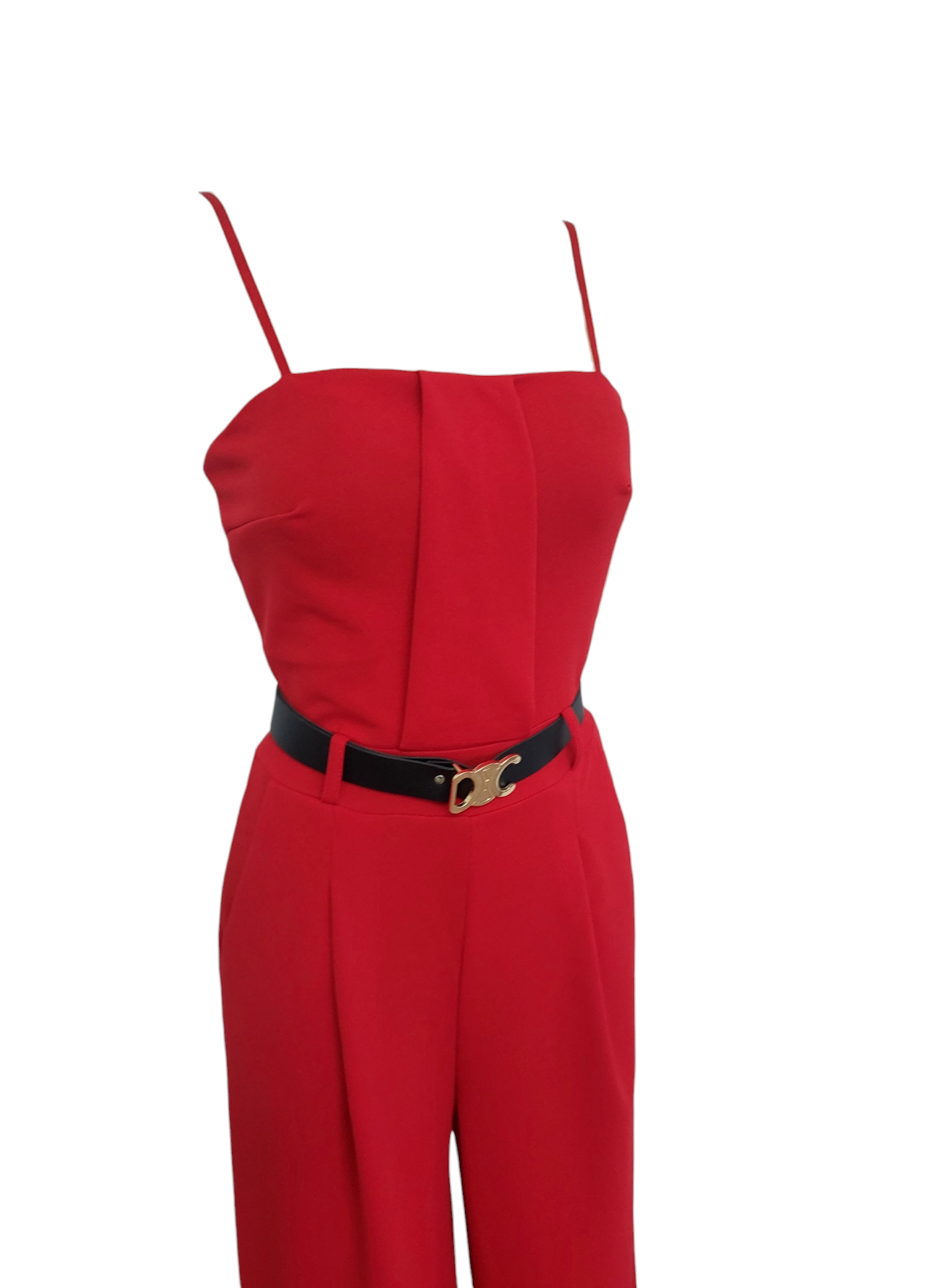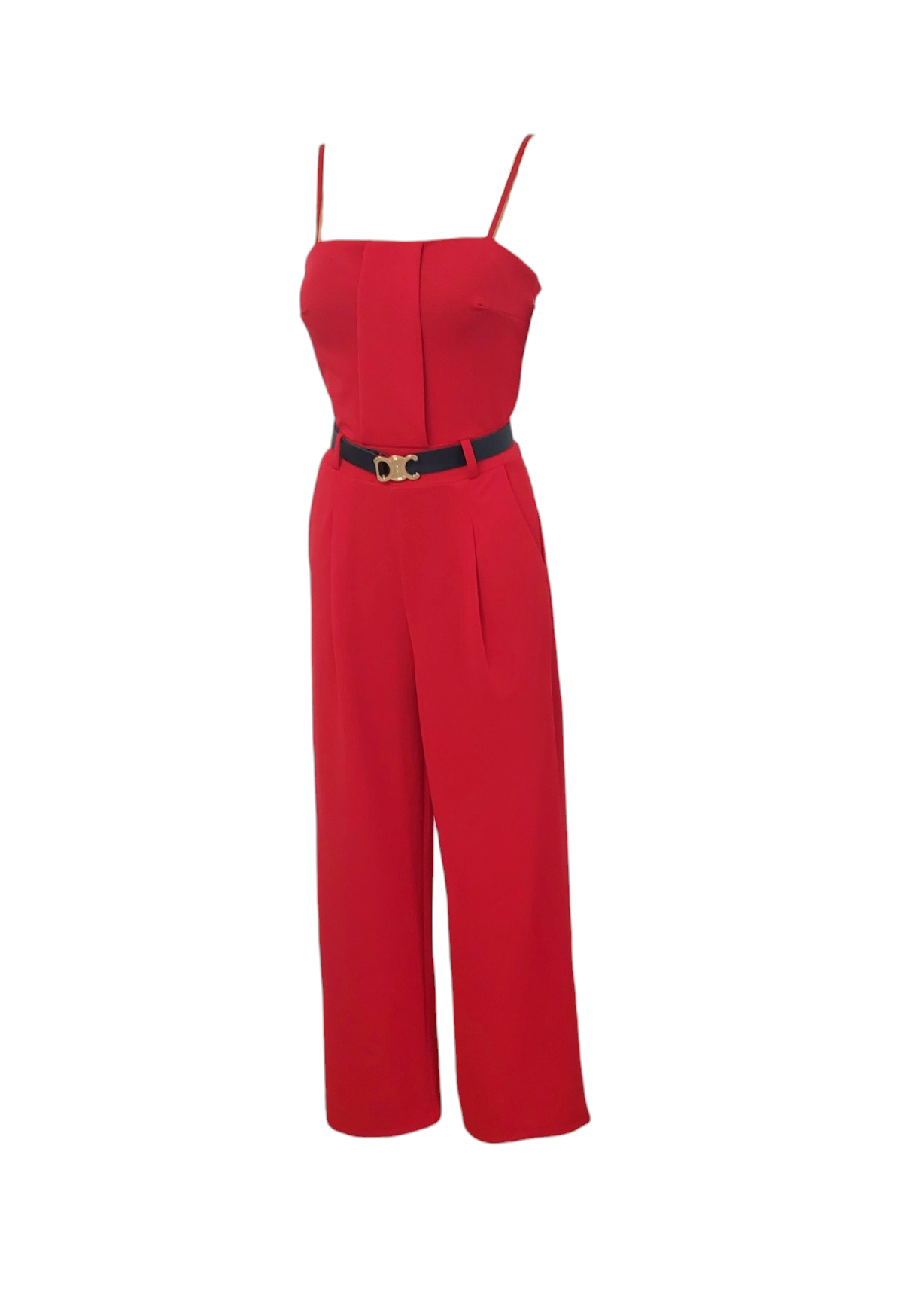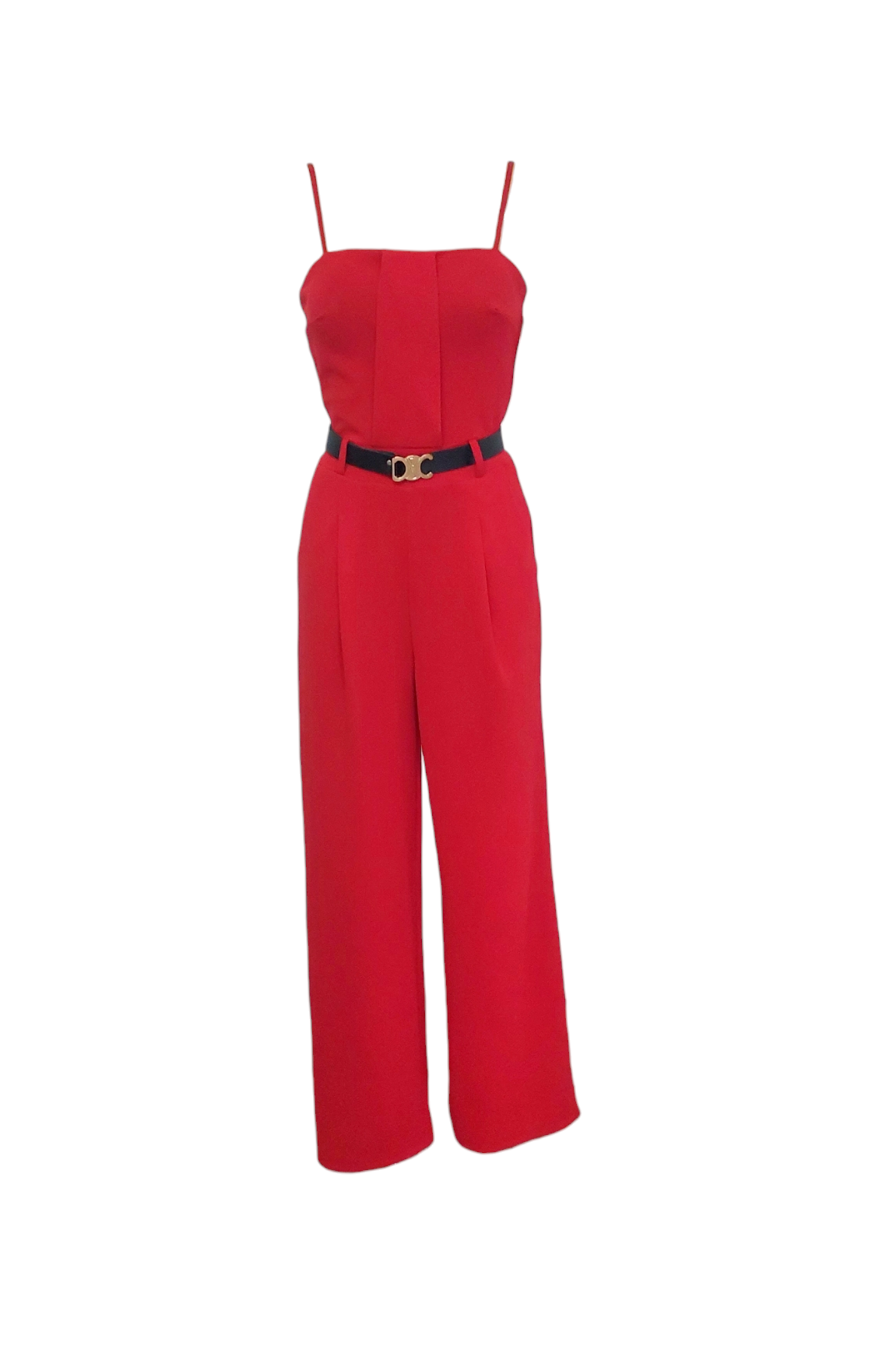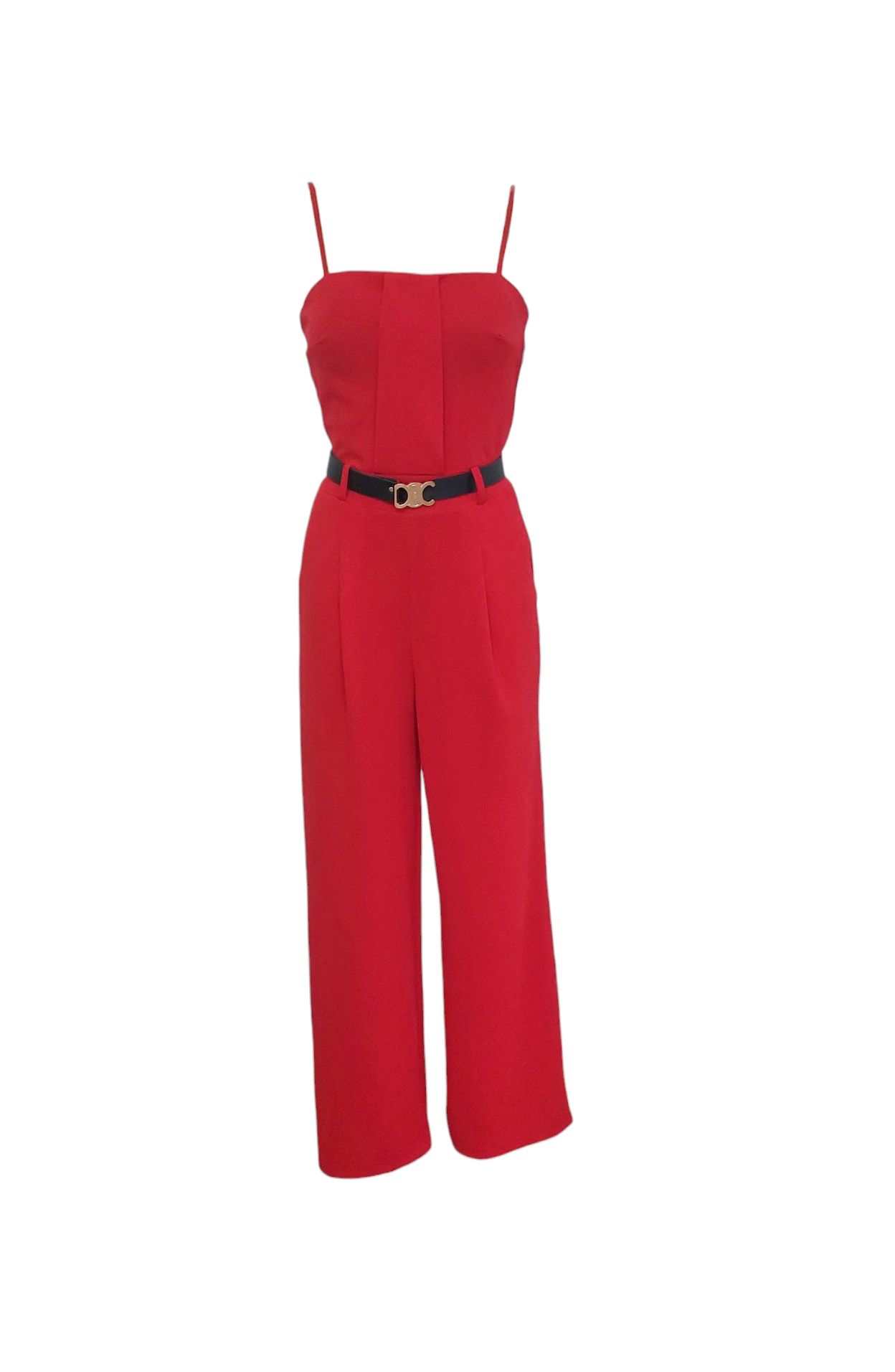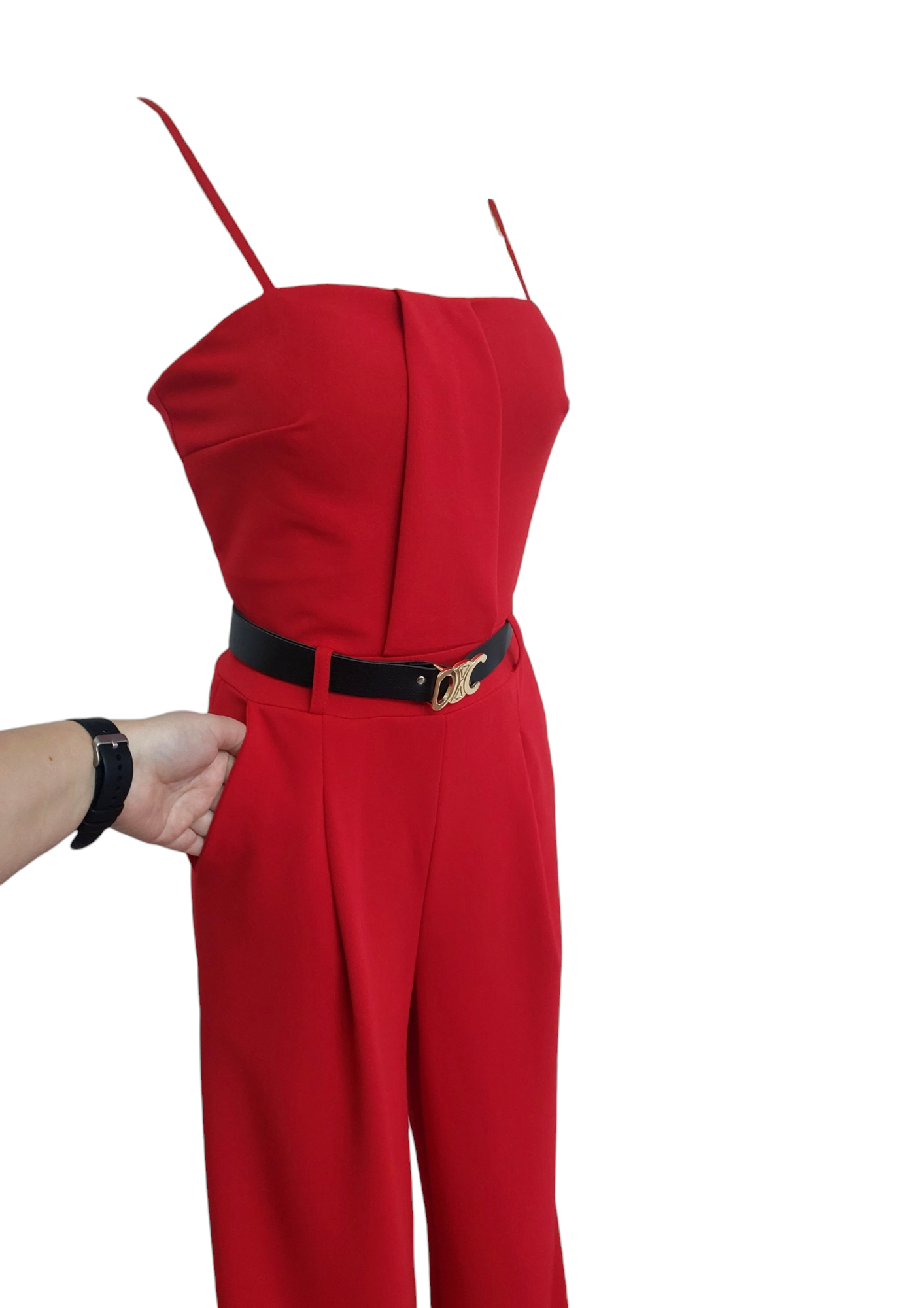 Kombinezon z długą nogawką i paskiem to propozycja dla kobiet, które stawiają na komfort i nowoczesny look. Model z prostymi nogawkami i talią podkreśloną paskiem. Dekolt bandeu i cienkie regulowane ramiączka subtelnie podkreślają szyję, obojczyki i górną część sylwetki. Elegancki kombinezon na cienkich ramiączkach to świetna alternatywa dla sukienek.