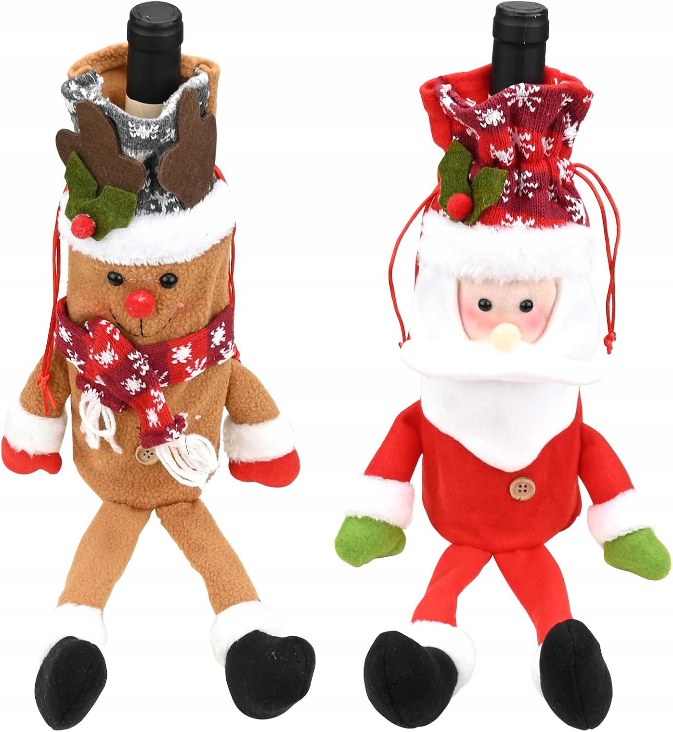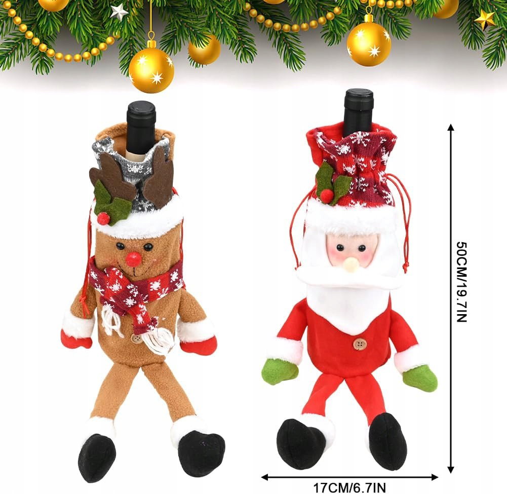 - Zestaw: dwie świąteczne torby na butelki wina. Idealne jako świąteczny prezent dla miłośników wina oraz dekoracja świątecznych butelek. Świetnie sprawdza się jako alternatywa dla tradycyjnych etykiet i naklejek na wino.