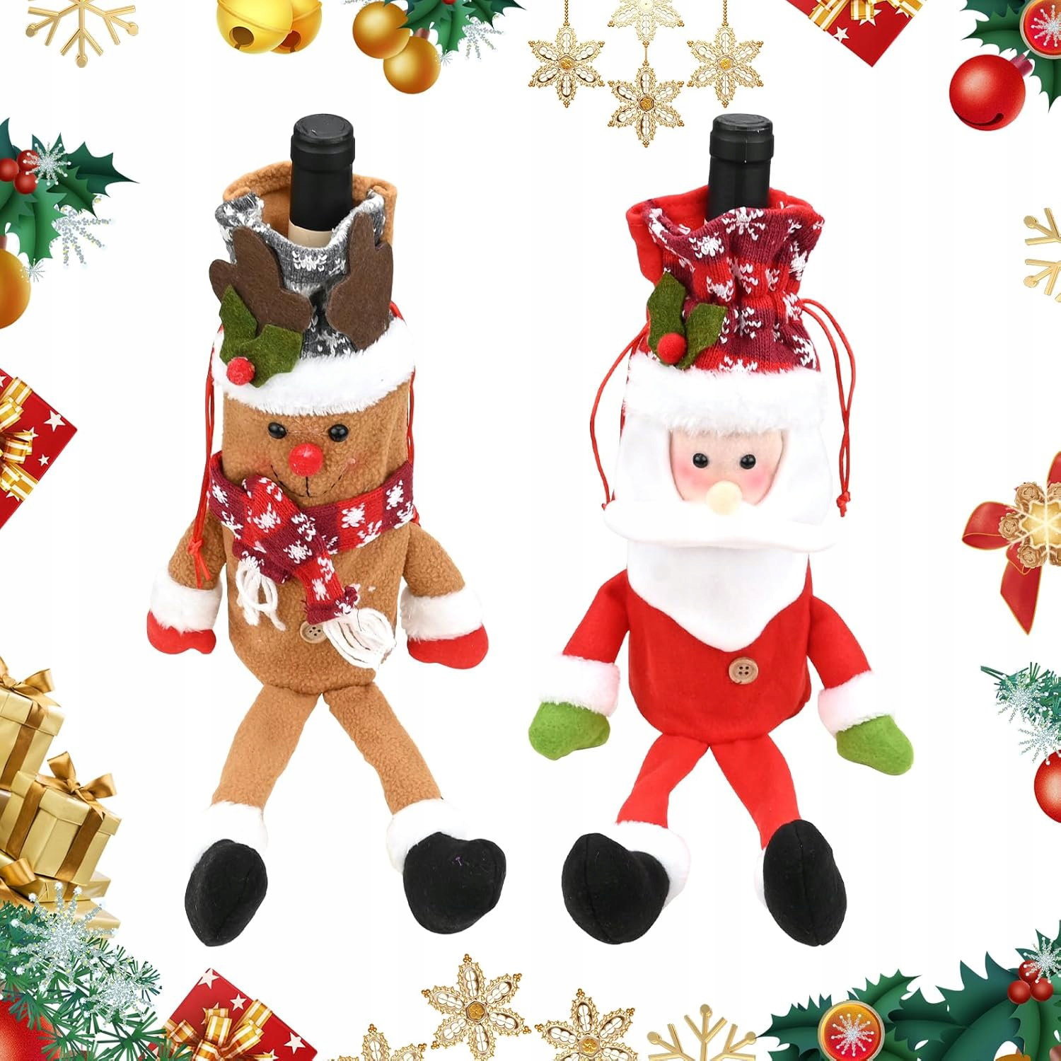 Dzięki nim butelki wina zyskują wyjątkowy, bożonarodzeniowy wygląd, idealny na przyjęcia i jako prezent dla miłośników wina.