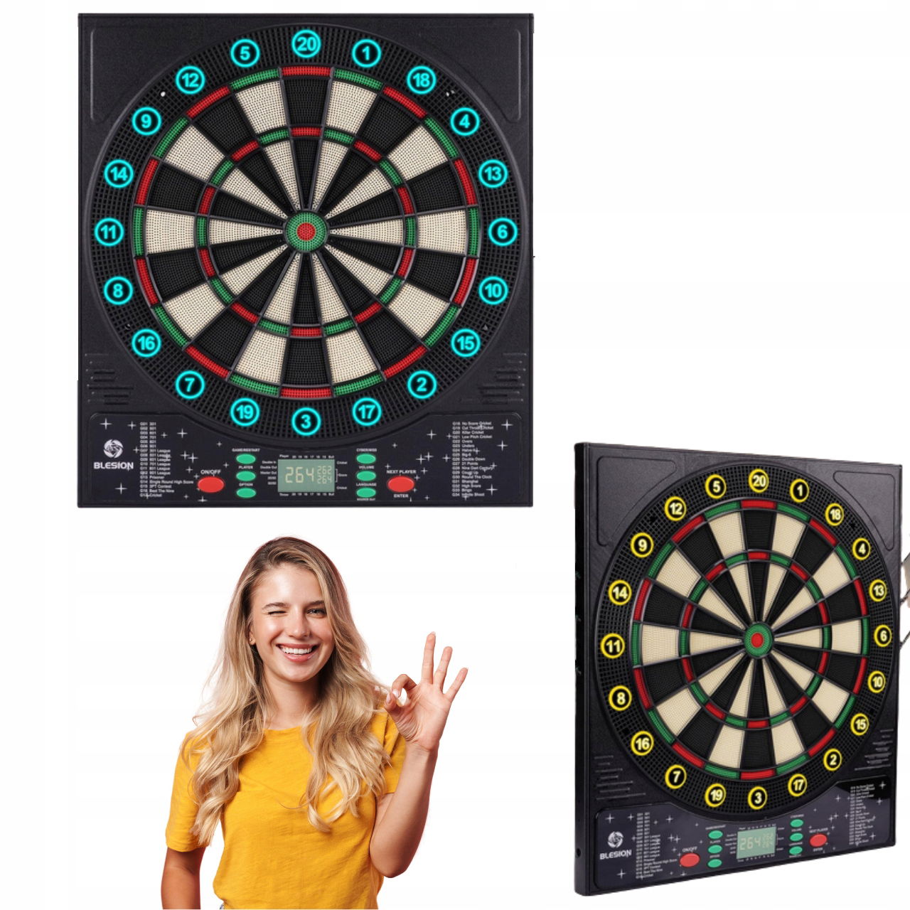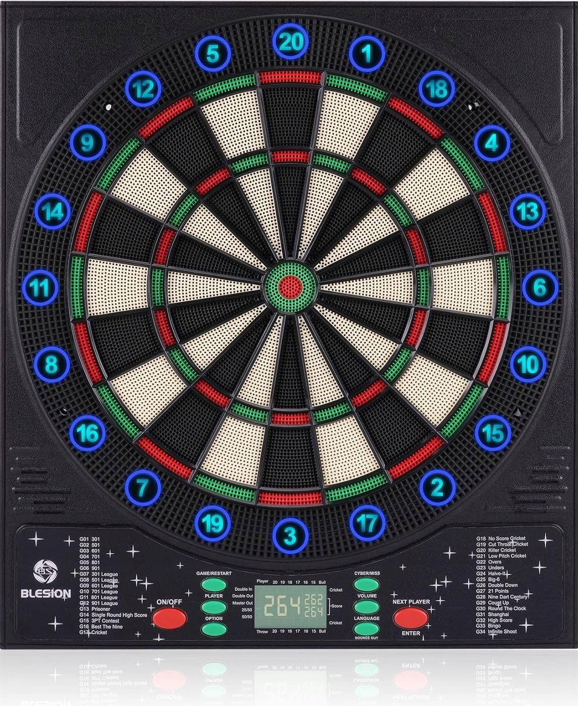 Elektroniczna tarcza do darta BLESION 24152 6 lotek niemiecki lektor