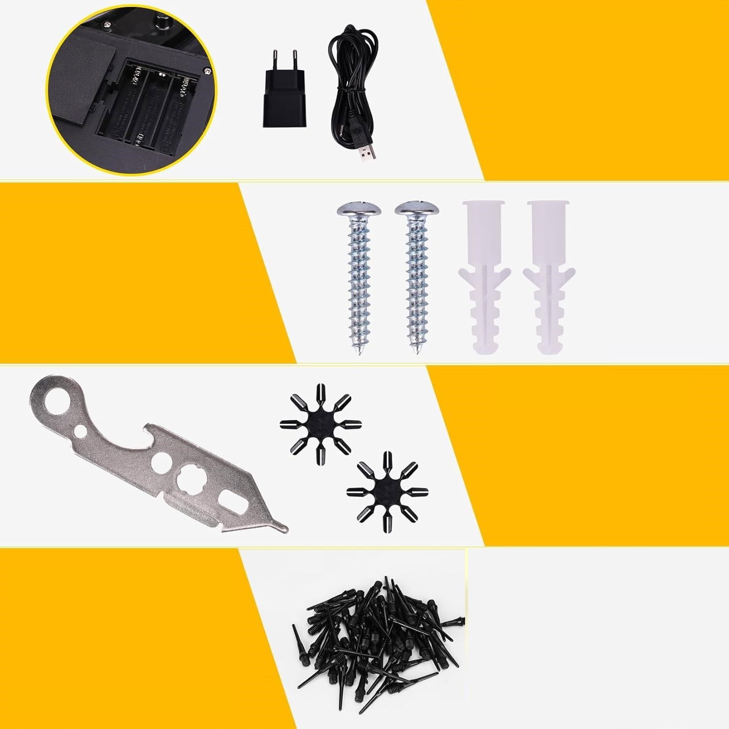 W zestawie tarcza z zasilaczem, brak rzutek.
