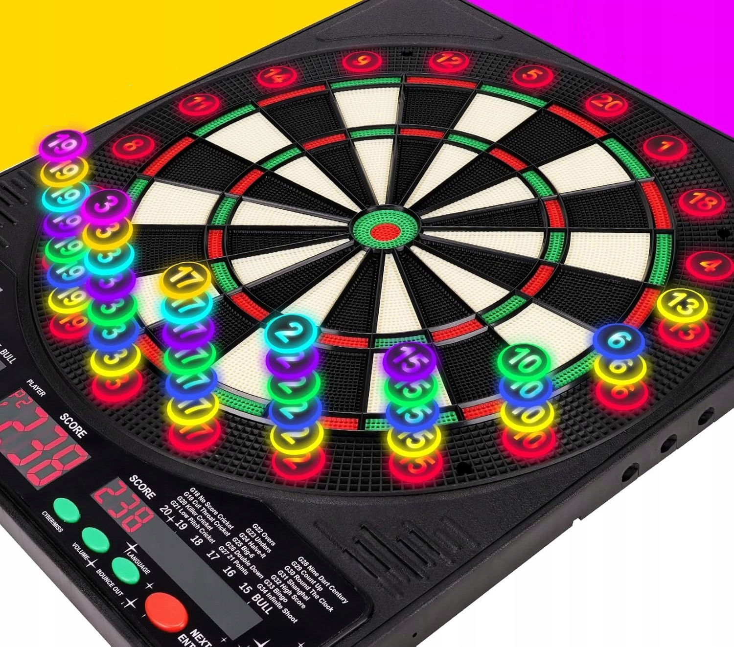 Innowacyjna tarcza do darta z 34 grami i podświetlanym pierścieniem cyfrowym!