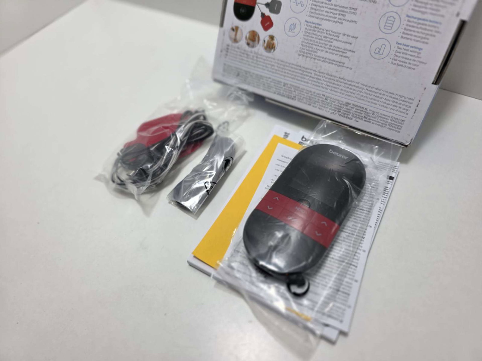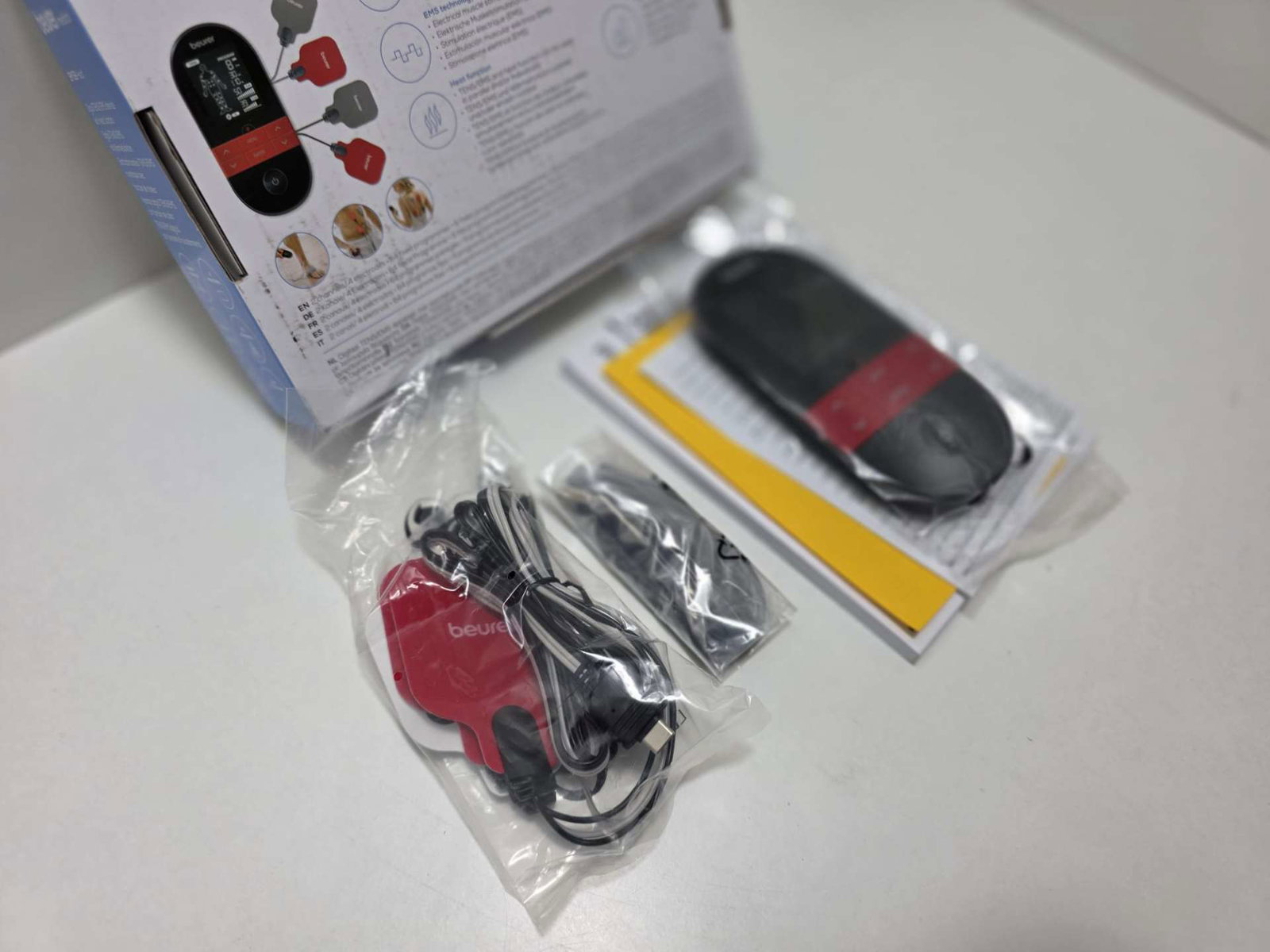 W komplecie otrzymujesz elektrody, przewody oraz praktyczny klips do wygodnego korzystania z urządzenia gdziekolwiek jesteś.