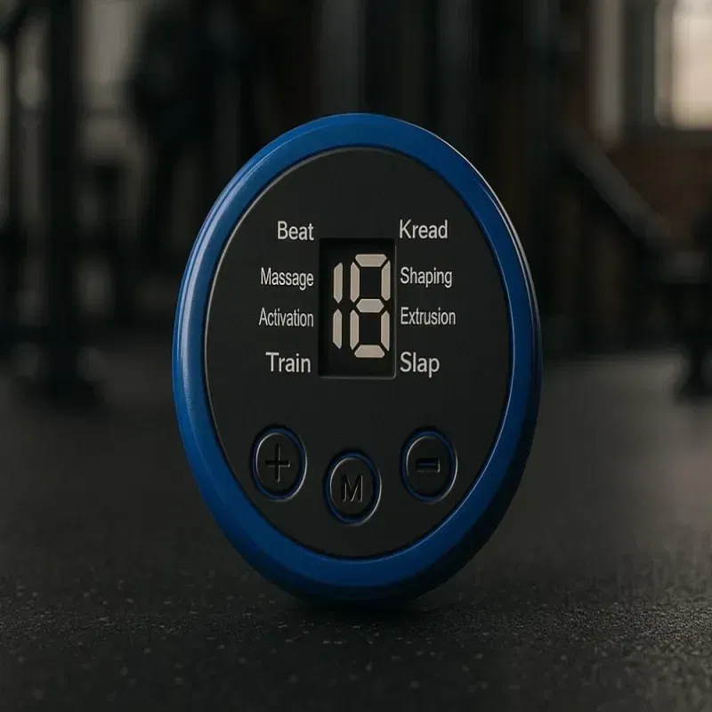 Urządzenie jest lekkie, elastyczne i dopasowuje się do sylwetki. Duży czytelny wyświetlacz LED informuje o aktualnym trybie i poziomie mocy. Obsługa odbywa się za pomocą trzech przycisków — wystarczy założyć pas, wybrać program i rozpocząć trening. Zasilanie odbywa się przez akumulator ładowany USB, co zapewnia wygodę użytkowania bez konieczności wymiany baterii.