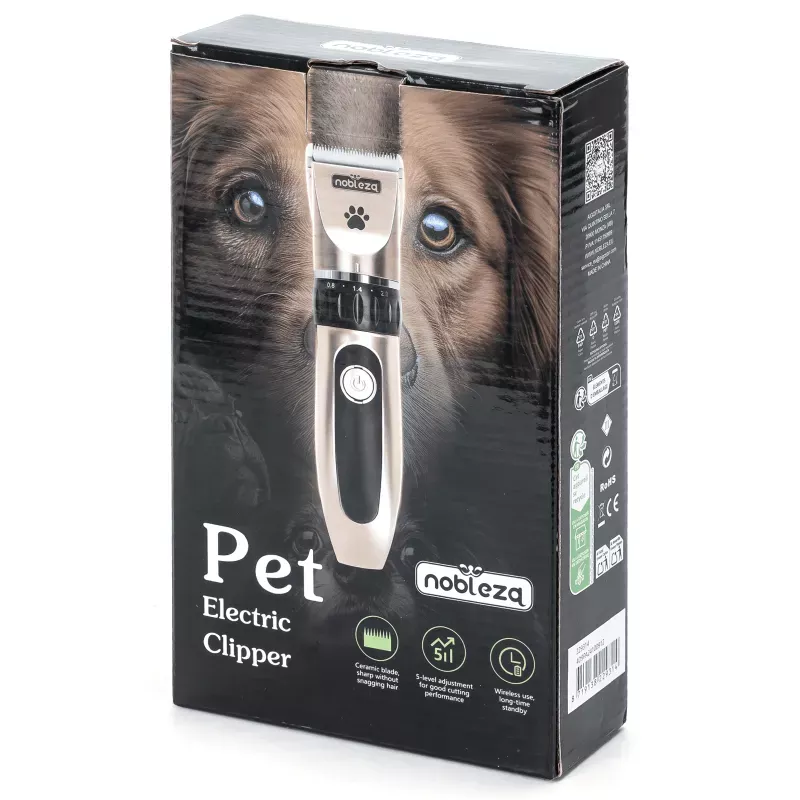 Profesjonalny zestaw do strzyżenia zwierząt, zawierający maszynkę bezprzewodową i nasadki. To wszystko, czego potrzebujesz, aby przyciąć sierść swojego psa lub kota. Pięknie wykończona wersja bezprzewodowa.