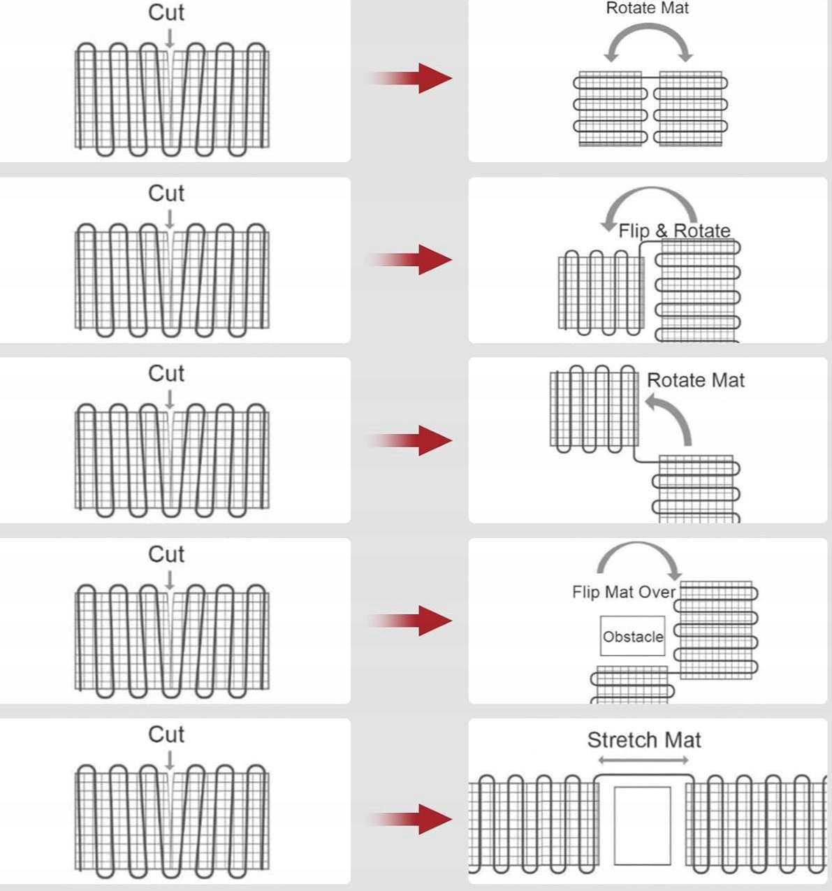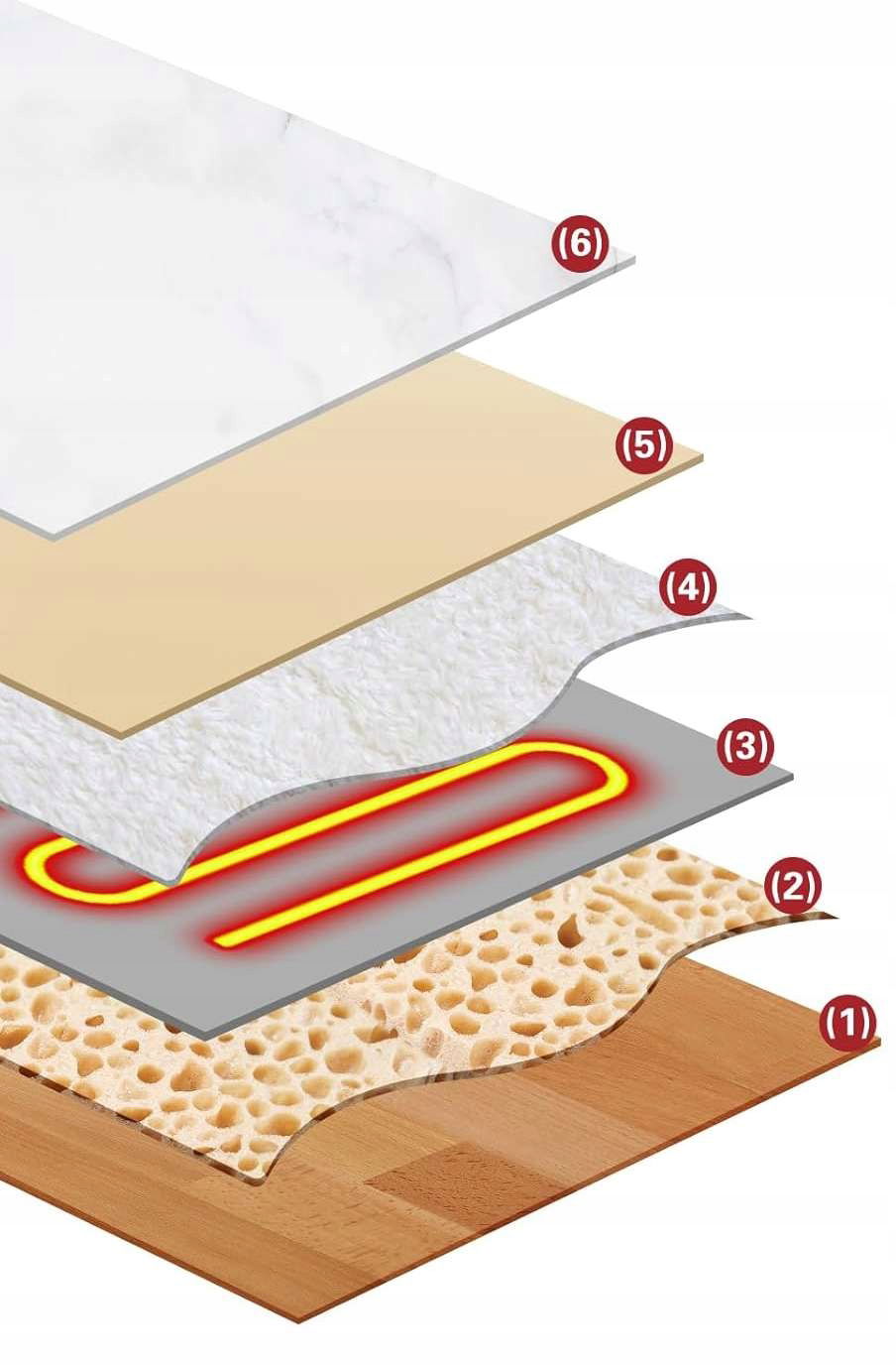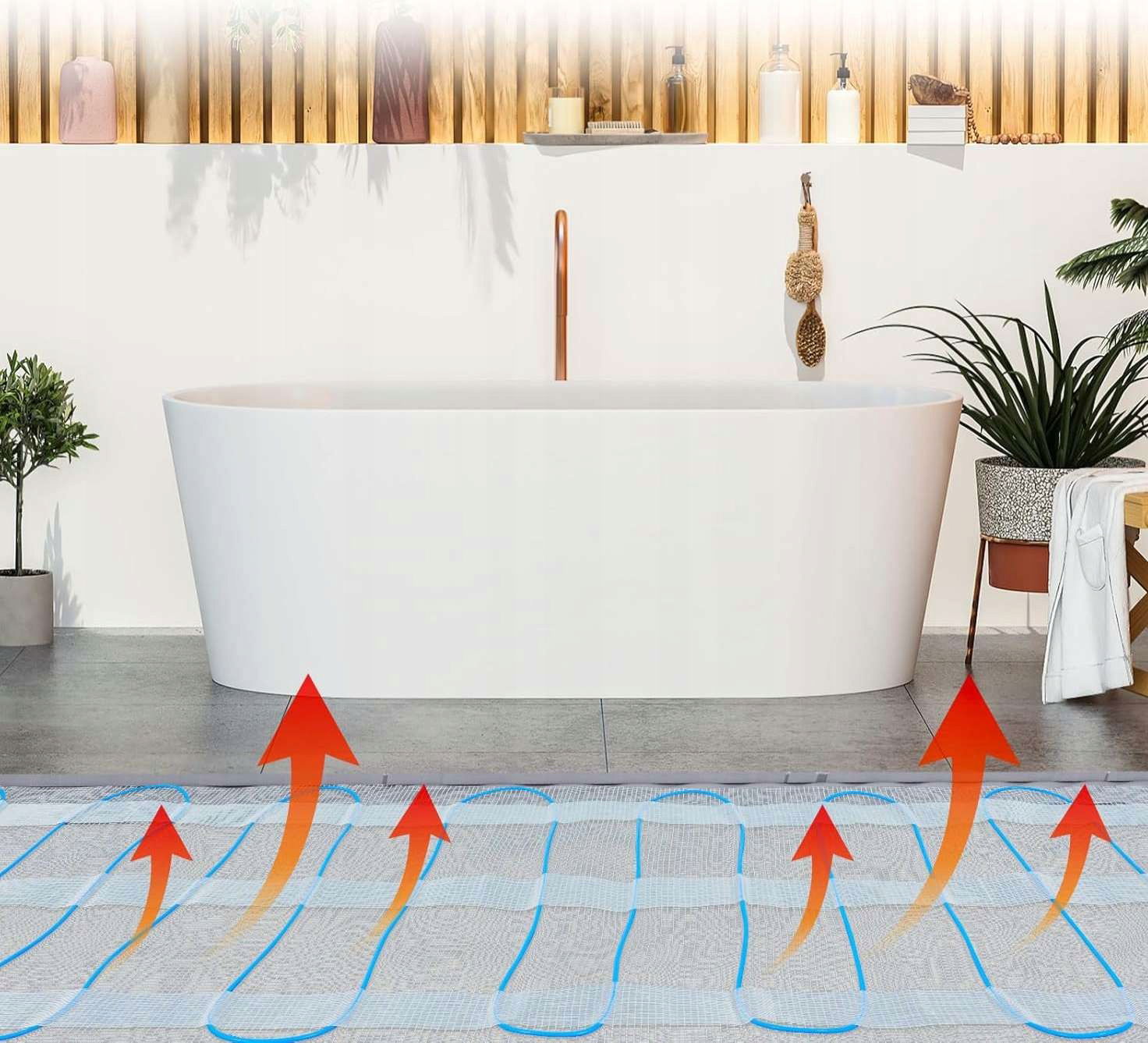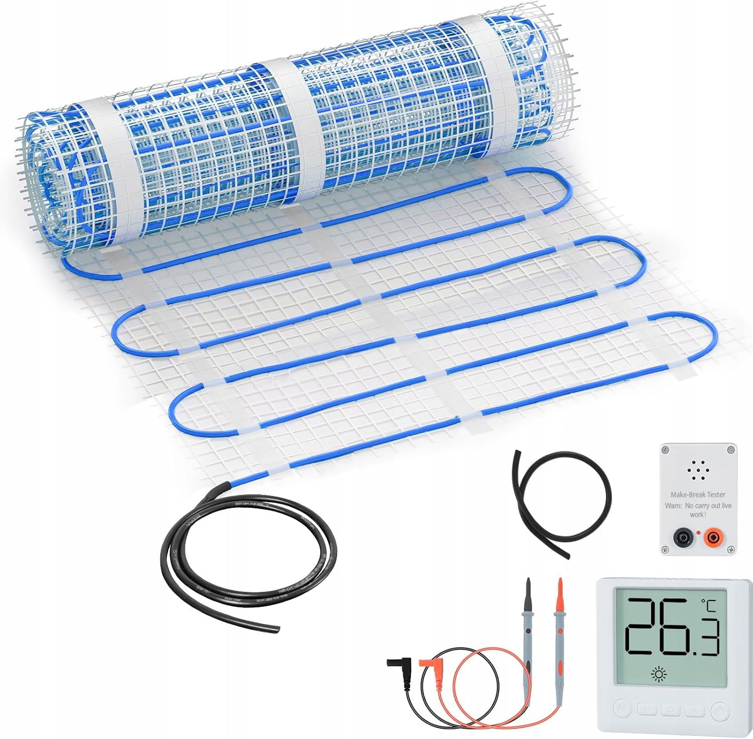 Otrzymujesz: 1 rolka 0,5 x 16 m kabla do ogrzewania podłogowego, 1 x termostat, 1 x alarm, 1 x czujnik temperatury; optymalizacja odstępu między pętlami w celu uzyskania optymalnego rozprowadzania ciepła, utrzymuje ciepło pomieszczenia od dołu do góry