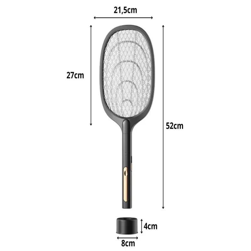 Łapka wyposażona jest w akumulator ładowany za pomocą kabla USB-C (w zestawie). Możesz używać jej jak klasycznej packi lub postawić ją w podstawce jako stacjonarną lampę owadobójczą.