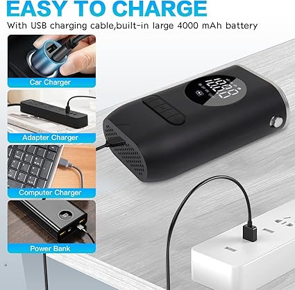 Pompka do opon YUGUANG ma mocny silnik, który może zapewnić ciśnienie 150 PSI i przepływ powietrza 32 l/min. Opony od 25 do 35 PSI wymagają tylko 1 minuty, a opony od 0 do 32 PSI wymagają tylko 8 minut, aby w pełni napompować. Ta pompka samochodowa nadaje się do rowerów, motocykli, małych pojazdów, różnych piłek (piłek, piłek do koszykówki, piłek nożnych itp.).