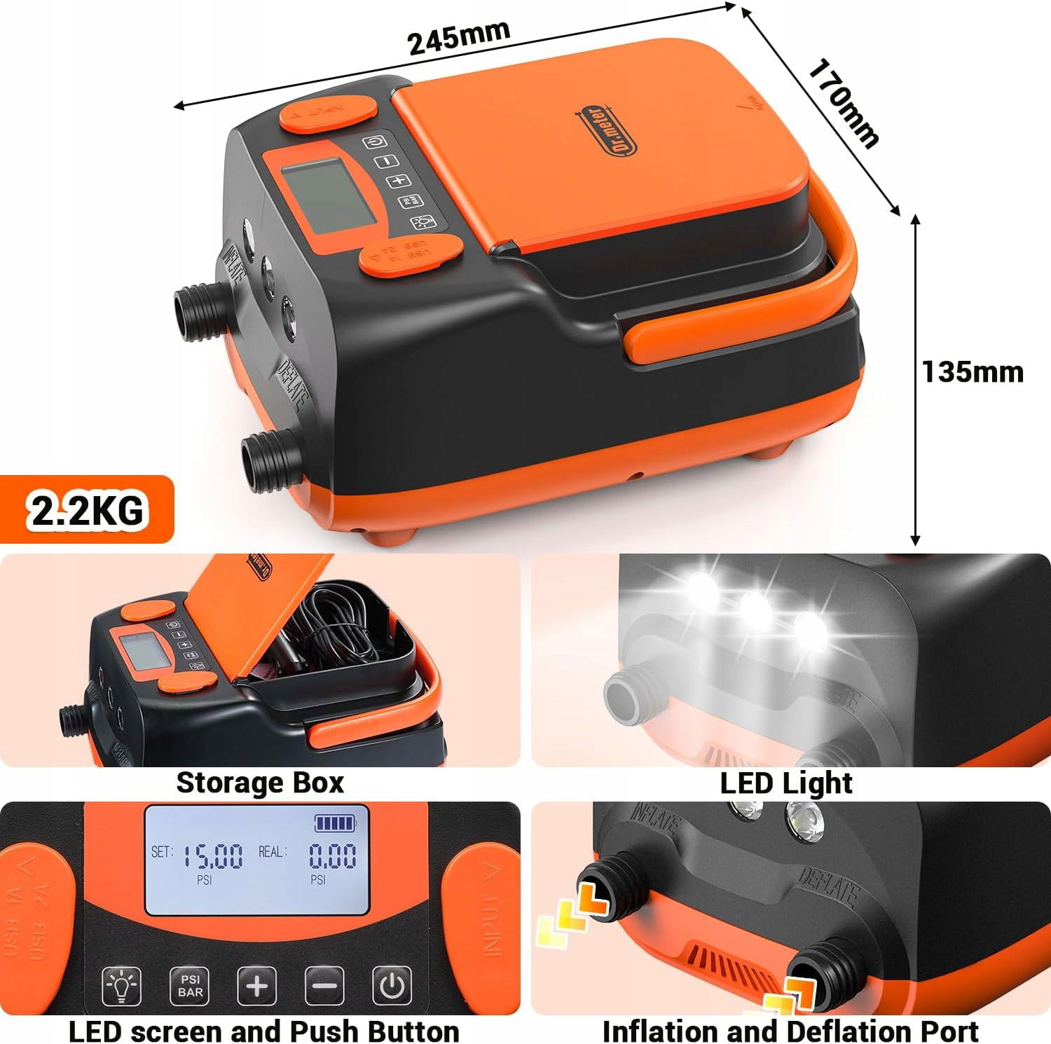 Dwa porty USB do ładowania: Twój telefon komórkowy prawie nie ma czasu ładowania baterii? Ta pompa Sup posiada na szczęście dwa porty USB 5 V i 5 V 2 A.