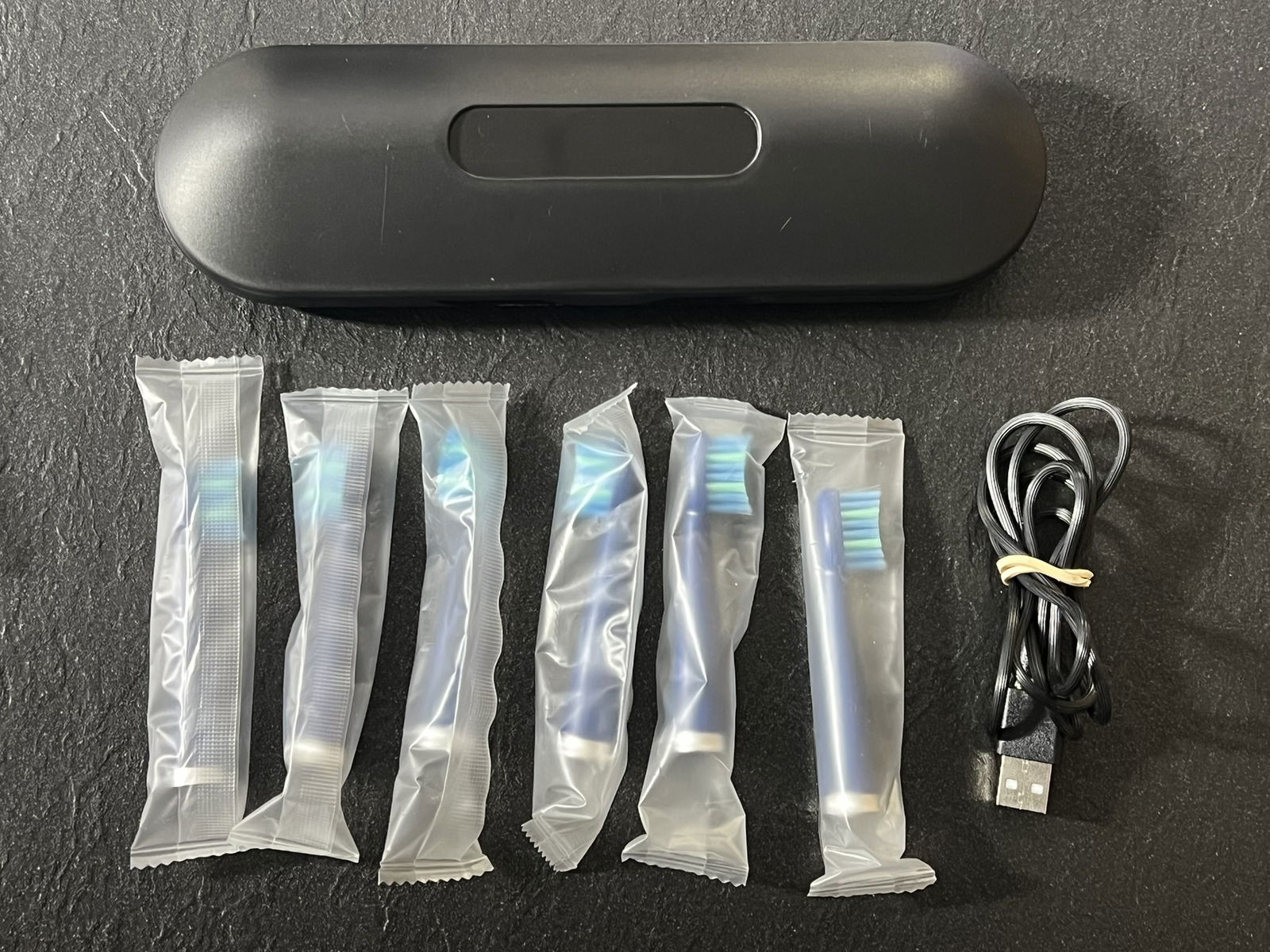 Elektryczne szczoteczki do zębów dla dorosłych z 8 głowicami - 5 trybów szczoteczki elektrycznej z etui, IPX7, ultradźwiękowe elektryczne szczoteczki do zębów dla rodziny w podróży, granatowy
