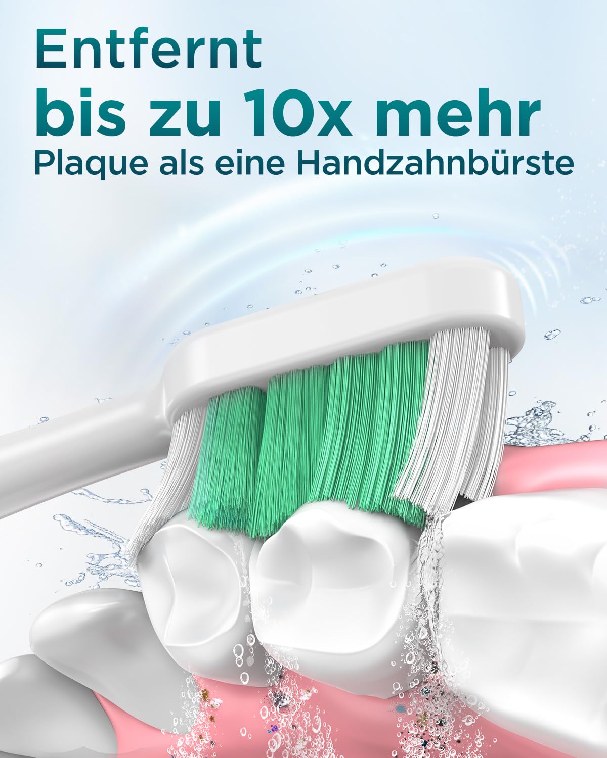 Doskonały stosunek jakości do ceny: 8 wymiennych główek szczoteczki ma włosie w trzech różnych kolorach, co ułatwia rozróżnienie poszczególnych główek, gdy używają ich inni członkowie rodziny. Dołączone główki szczoteczki zapewniają łączną żywotność 24 miesięcy. Szczoteczka soniczna wykorzystuje wyłącznie włosie w 100% zaokrąglone, aby chronić dziąsła i szkliwo. Włosie w kształcie litery W idealnie dopasowuje się do zębów i dokładnie czyści przestrzenie między nimi.