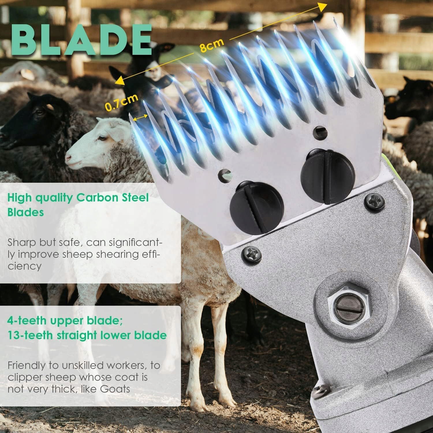 ✔️ Wytrzymałe ostrza, które nie zawiodą: Ostrza wykonane są z wyrafinowanej stali węglowej, zapewniając ostrość, trwałość i bezpieczeństwo. Dzięki nowoczesnej technologii, ostrza są precyzyjnie kute, co sprawia, że są odporne na uszkodzenia, a jednocześnie delikatne dla owiec.
