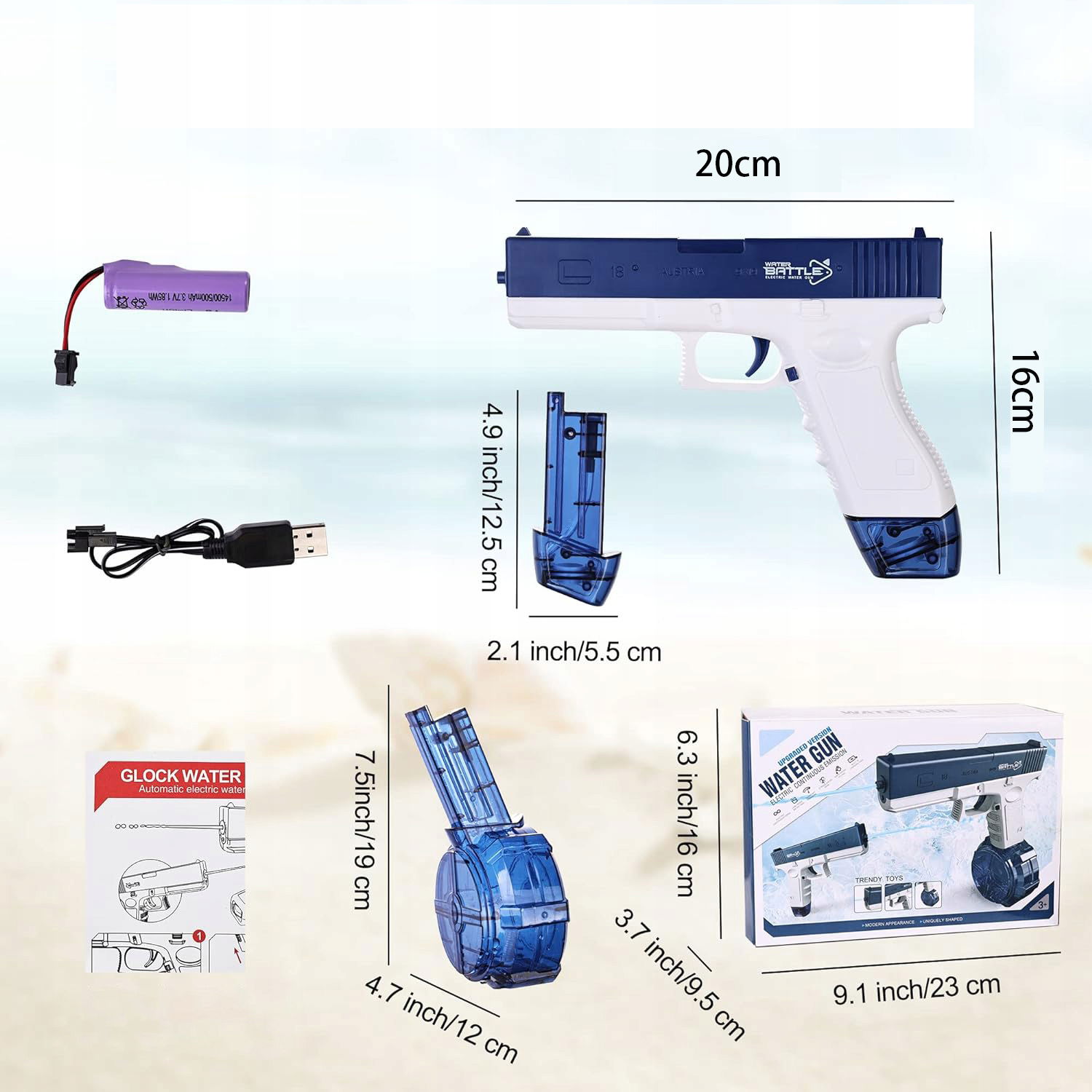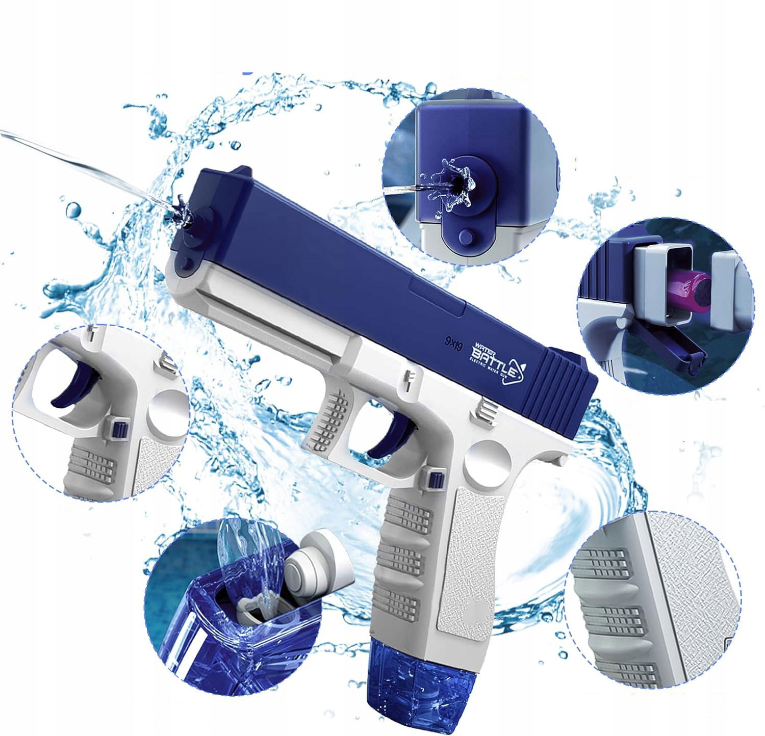 nasz elektryczny pistolet na wodę to prawdziwa innowacja w bitwach na pistolety na wodę! Ten automatyczny elektryczny pistolet na wodę wyposażony jest w przycisk, który pozwala uzyskać mocne i precyzyjne strumienie wody, dzięki którym możesz cieszyć się niespotykaną precyzją.
