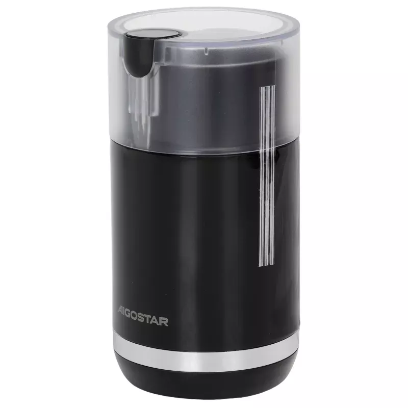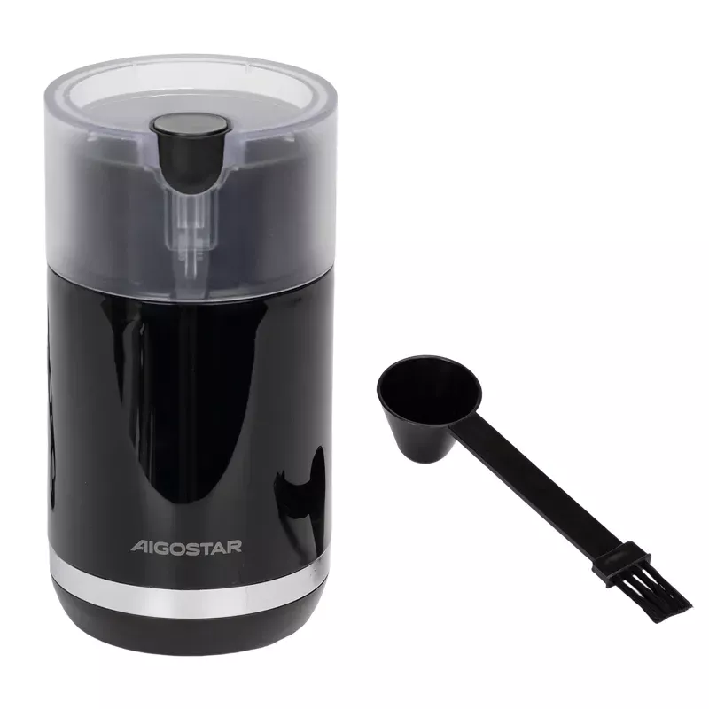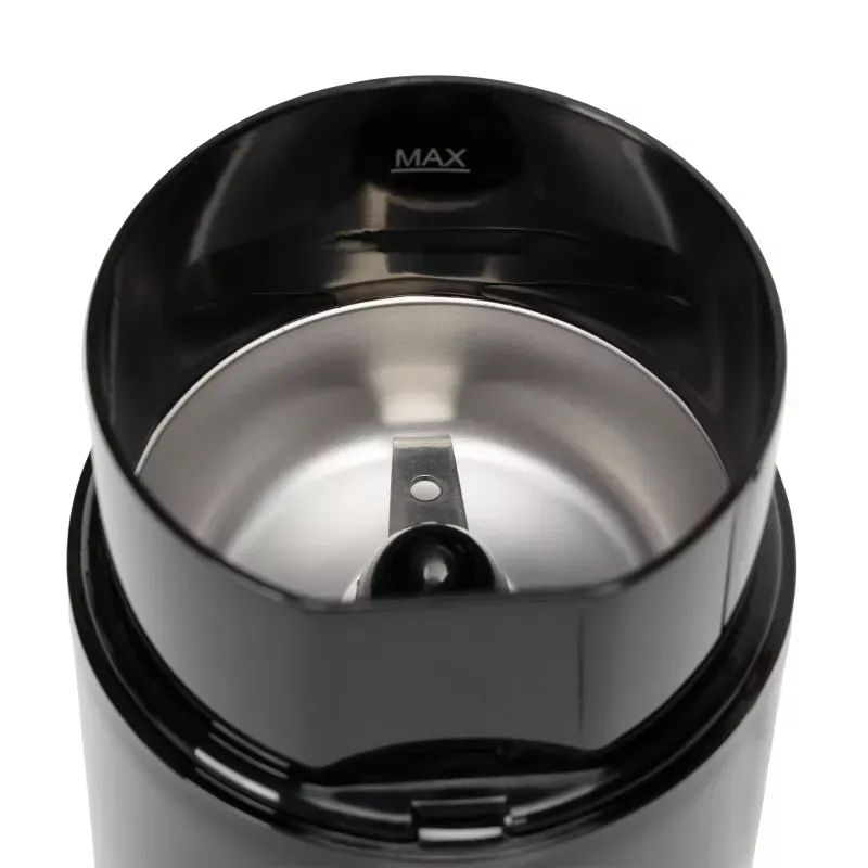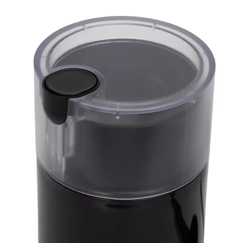 Ostre ostrza ze stali nierdzewnej zapewniają dużą moc mielenia. Obsługa jednym przyciskiem, prosta i wygodna. Przezroczysta pokrywa dopuszczona do kontaktu z żywnością zapewnia wizualizację działania. Nadaje się do mielenia ziaren kawy, orzechów, suchych przypraw i innych ziaren. W zestawię z łyżką/szczoteczką 2 w 1. Duża pojemność - jednorazowo można zmielić do 70 g kawy. Parametry techniczne: