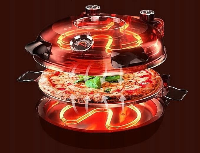 Ciesz się wyjątkową pizzą w domowym zaciszu dzięki elektrycznemu piecowi YIBAKE! Temperatura aż do 420°C gwarantuje doskonałą chrupkość i miękkość w zaledwie 4 minuty.