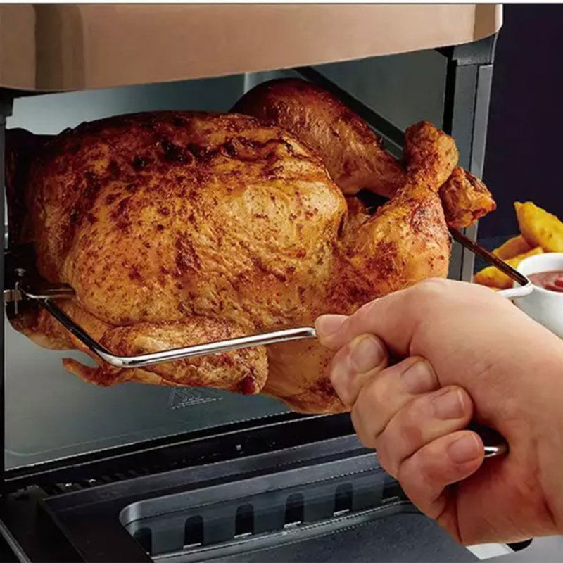 Elektryczny piekarnik frytownica do pieczenia beztłuszczowego mięs, ryb, warzyw, ciast. Piekarnik wyposażony w funkcję rożna z obrotowym koszem na kurczaka oraz szaszłyki. System cyrkulacji gorącego powietrza zapewnia równomierne pieczenie potraw bez ryzyka przypalenia.