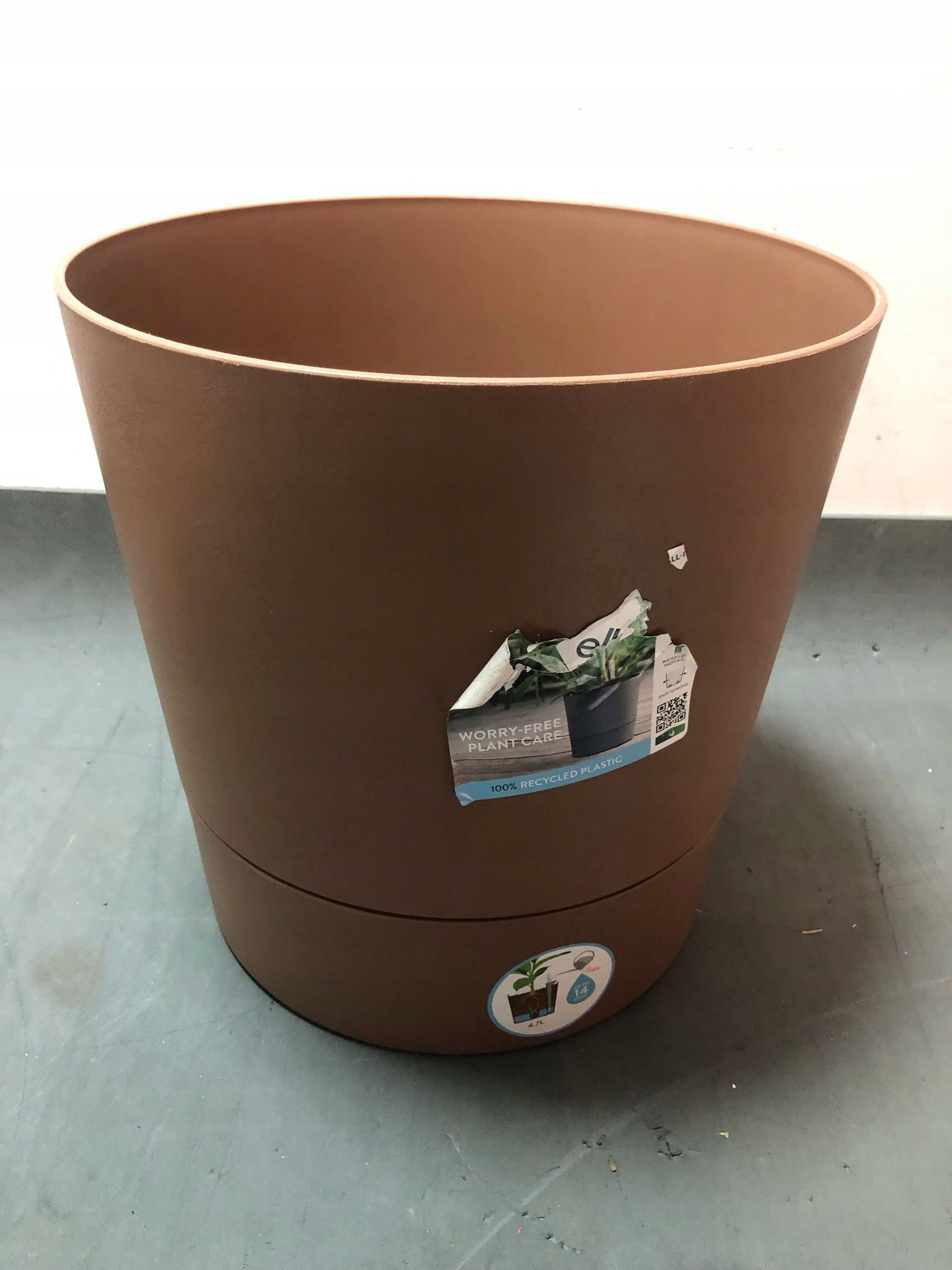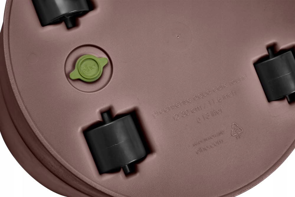 - nazwa przedmiotu: elho Greensense Aqua Care okrągła 35 cm, ze zintegrowanym pojemnikiem na wodę, doniczka do użytku wewnątrz i na zewnątrz, 100% plastik z recyklingu, Ø 34,5 x wys. 34,1 cm, brązowa/gliniasty brąz