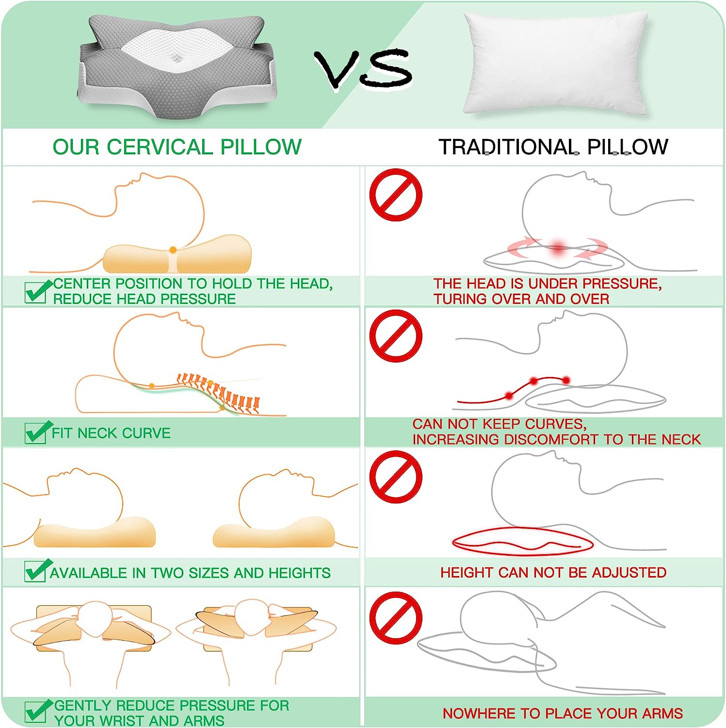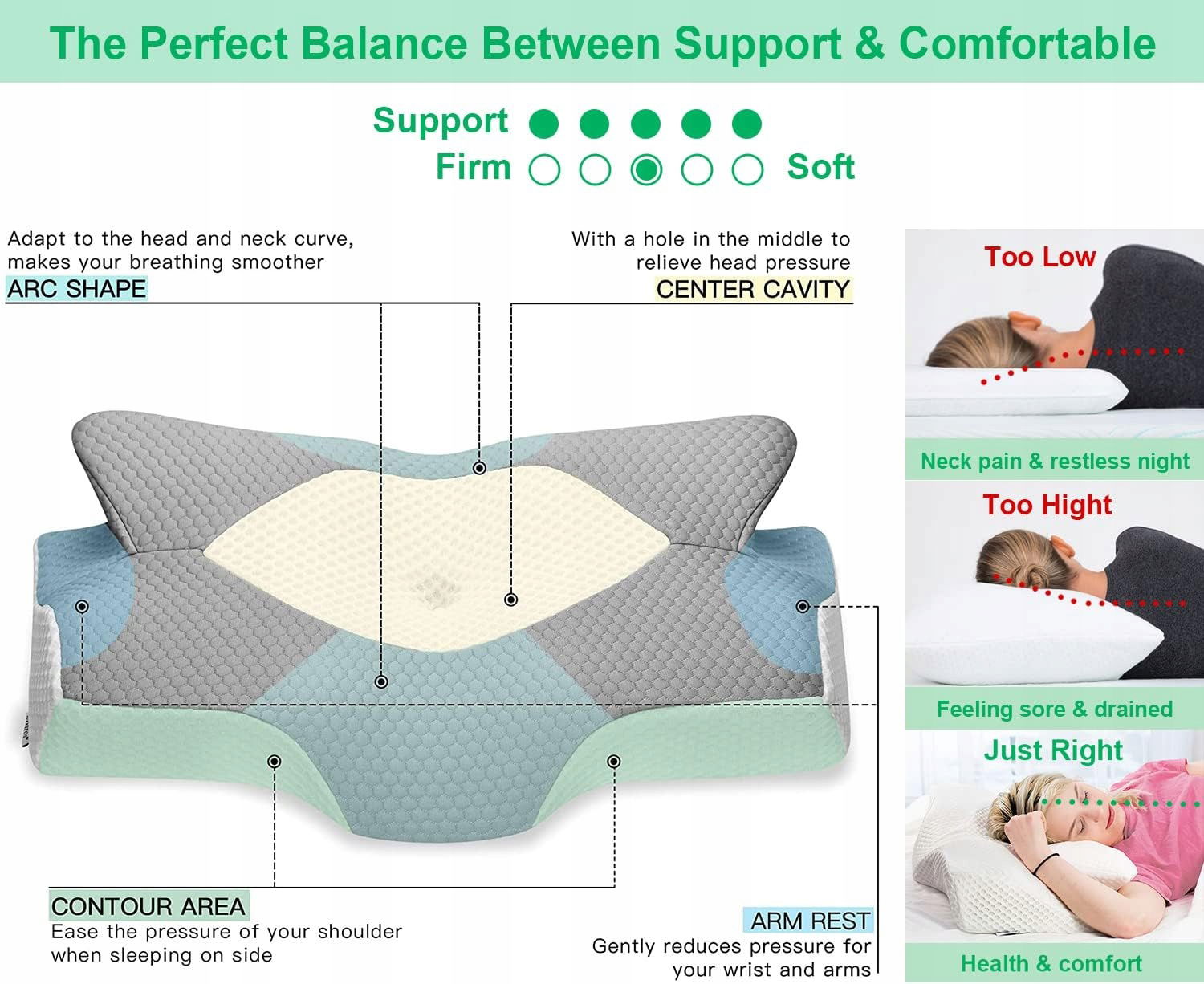 - ERGONOMICZNA KONSTRUKCJA: Poduszki konturowe Elviros są dobrze zaprojektowane, aby wspierać, podążając za naturalną krzywizną ciała, utrzymując optymalne drogi oddechowe, zapewniając mniej chrapania i bardziej spokojny sen. Wycięcia z boku zapewniają górnemu ramieniu miejsce do odpoczynku i utrzymują je pod kątem, aby ramię nie garbiło się przed Tobą.