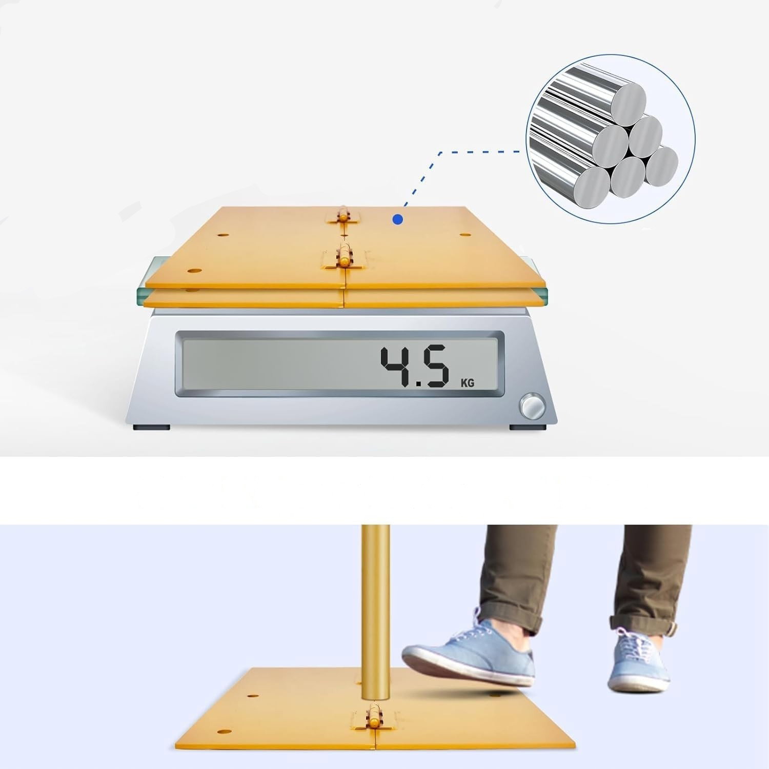 - Materiał: konstrukcja wykorzystuje wysokiej jakości żelazo i stop aluminium, co zapewnia stabilność oraz dużą odporność na obciążenie. Płaska stalowa podstawa nie tylko zwiększa wytrzymałość, ale też ogranicza ryzyko przypadkowego przewrócenia nawet przy dużych tłach.