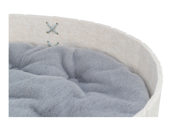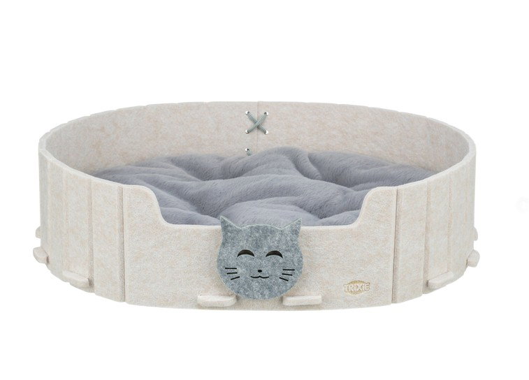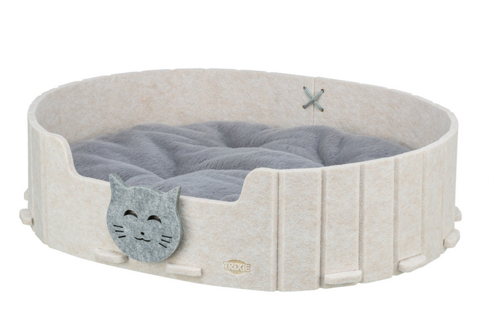 Dzięki zastosowaniu filcu legowisko dla kota jest odporne na odkształcenia i łatwe w utrzymaniu czystości. Owalny kształt sprzyja naturalnej pozycji snu zwierzęcia.