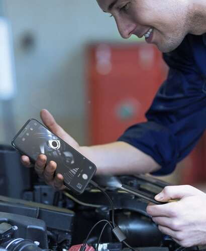 - 3 KOŃCÓWKI W ZESTAWIE – kamera posiada 3 wymienne końcówki. Każda z nich ma inną funkcję (hak, magnes, lusterko). Kamera jest połączona 2 metrowym przewodem, który jest w miarę elastyczny i wytrzymały. W łatwy sposób możesz dotrzeć do bardzo trudno dostępnych miejsc i zobaczyć, co jest przyczyną usterki.