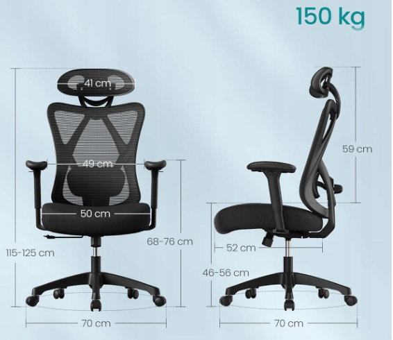 Ergonomiczny fotel biurowy, komputerowy, z siatki 150 kg SONGMICS OBN063BH01