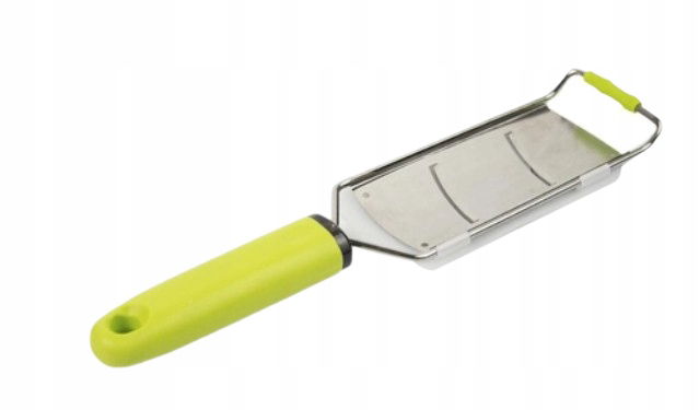 Znajdująca się na końcu gumowa podpórka umożliwia swobodne oparcie tarki o deskę lub blat, bez ryzyka ich uszkodzenia. Przedmiot można myć w zmywarce. Produkt można używać do tarcia ziemniaków, serów, jabłek czy cebuli.