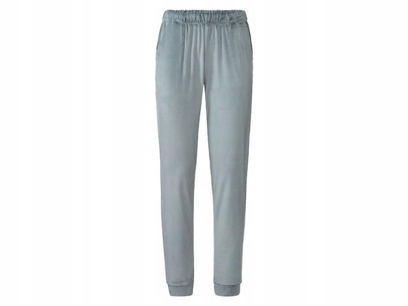 Spodnie wykonane z przyjemnej miękkiej, wysokiej jakości tkaniny welurowej niemieckiej marki Esmara. Z gumką w pasie i kieszeniami bocznymi. Z wygodną gumką w pasie i ściągaczami u dołu. Doskonałe