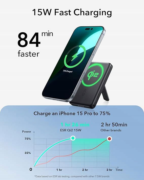 ESR Kickstand Power Bank MagSafe 5000mAh to świetne rozwiązanie do mobilnego ładowania, które łączy wygodę, wydajność i funkcjonalność w jednym eleganckim urządzeniu.