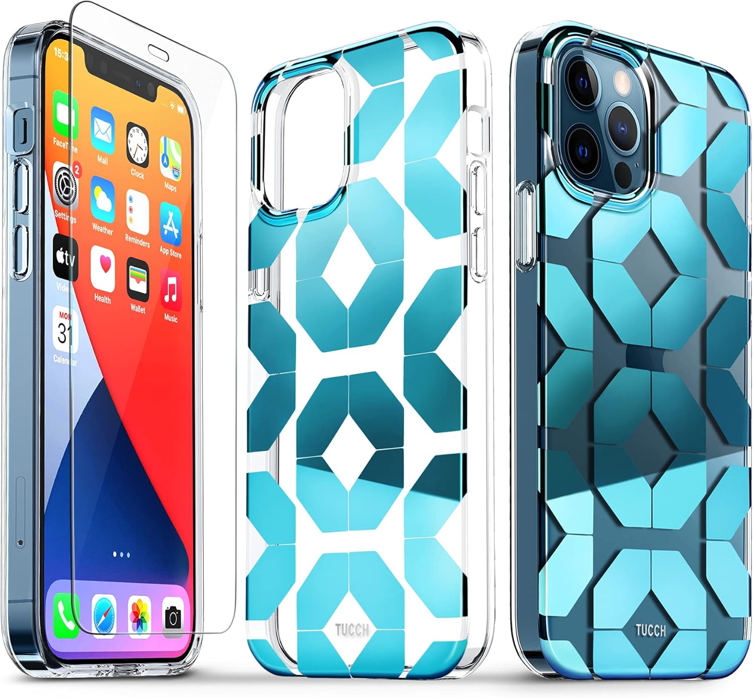 ETUI APPLE IPHONE 12/12 PRO NIEBIESKIE WZORY +SZKŁO