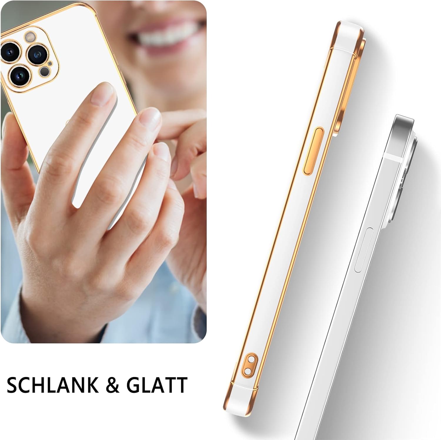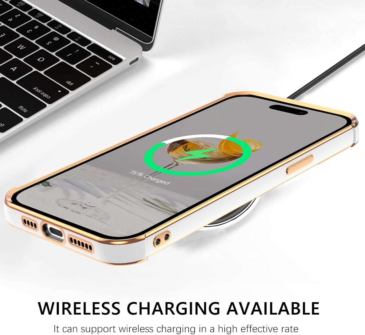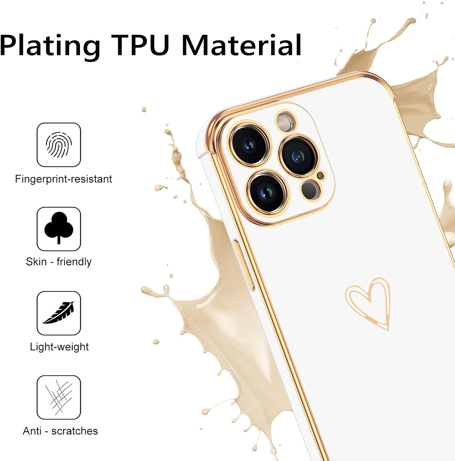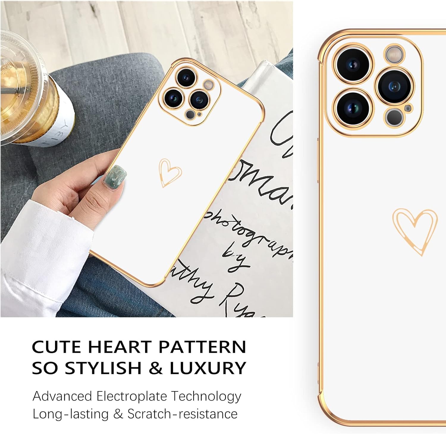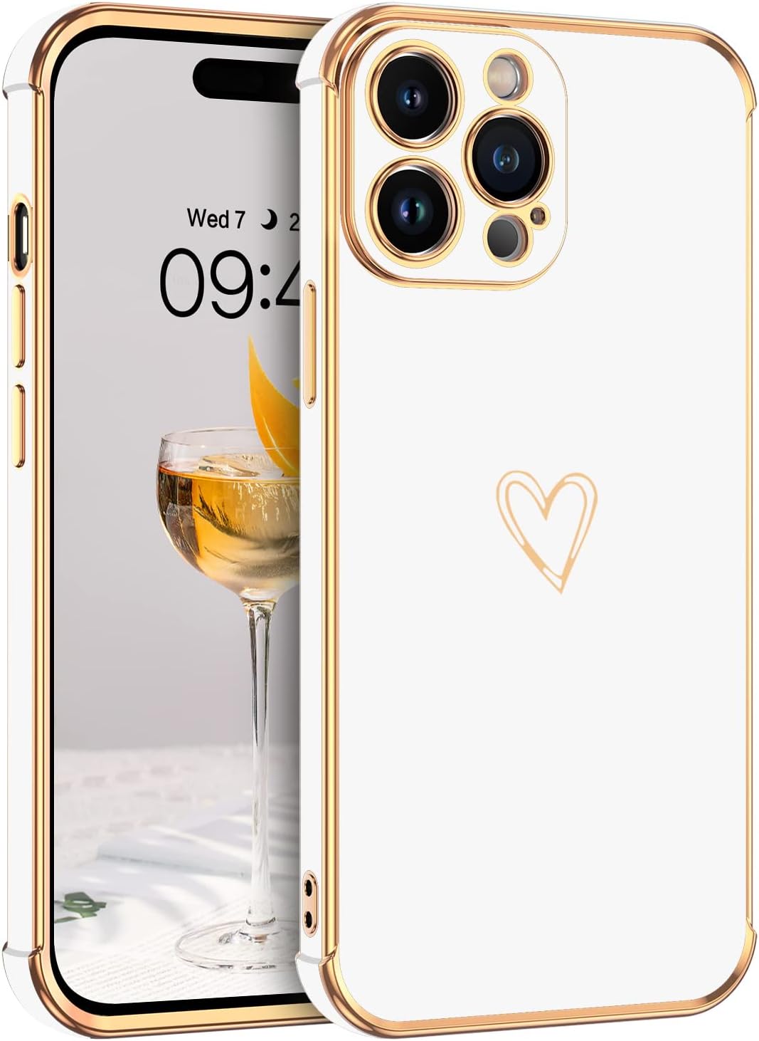ETUI APPLE IPHONE 14 PRO MAX SILIKONOWE BIAŁE ZŁOTA RAMKA SERDUSZKO GLAMOUR